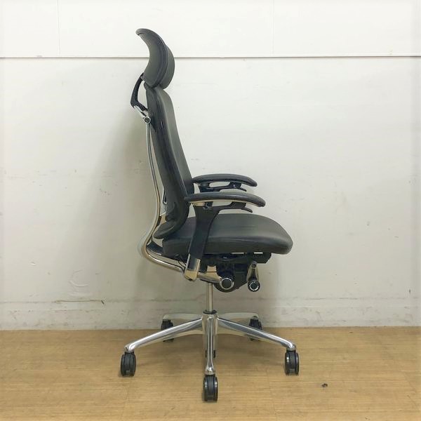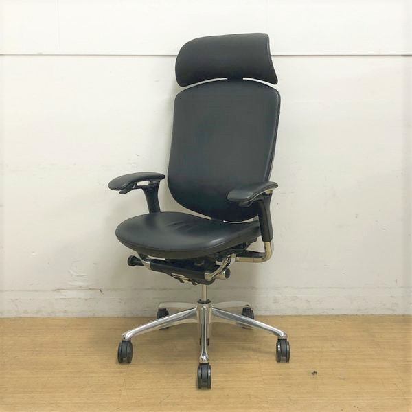 【2012年製】オカムラ コンテッサ ブラック(レザー) ヘッドレスト付 スタイリッシュなデザインと充実のメカニズム- 名古屋千種店
