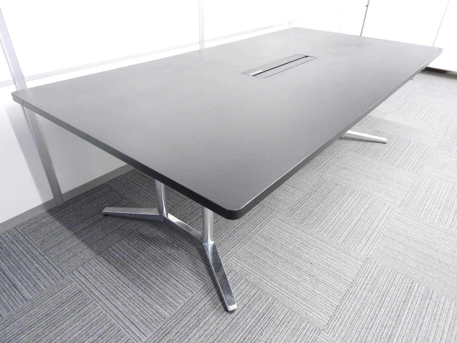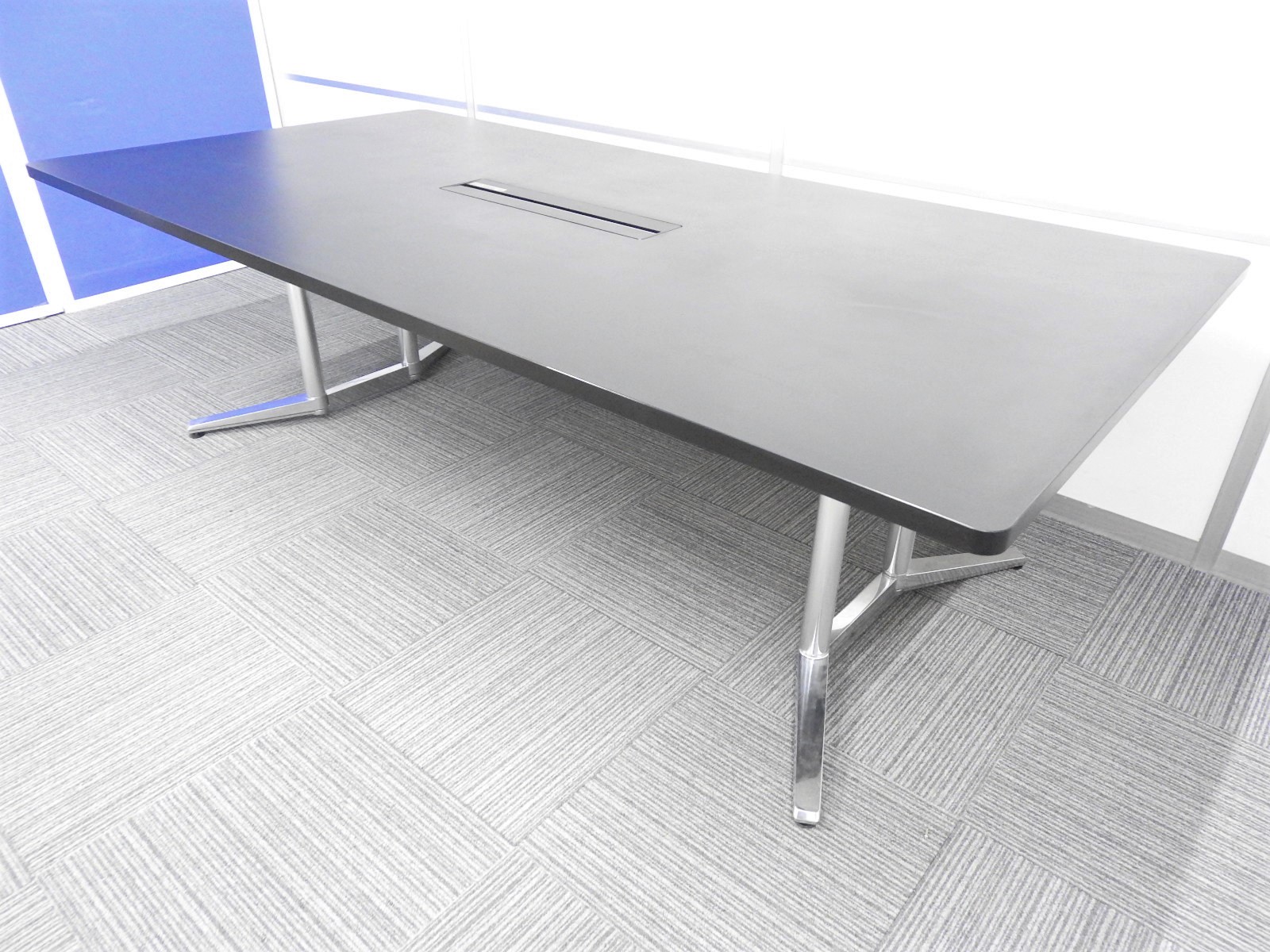 【ワンランク上の空間を演出!】■オカムラ ラティオシリーズ 会議用テーブル W2400×D1200㎜ 配線BOX付 スタイリッシュなブラックカラー!【在庫入替】A00824389- 川崎店