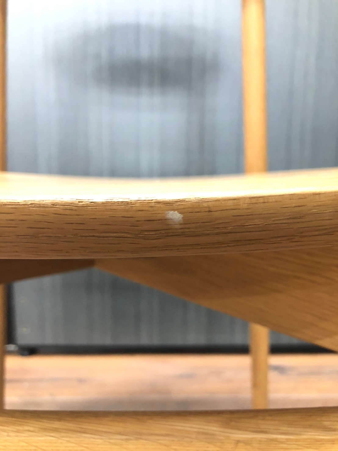 - かなり強い濃い黄ばみ・変色が商品全体にある。(例、座面・背もたれ、脚部等にある。)