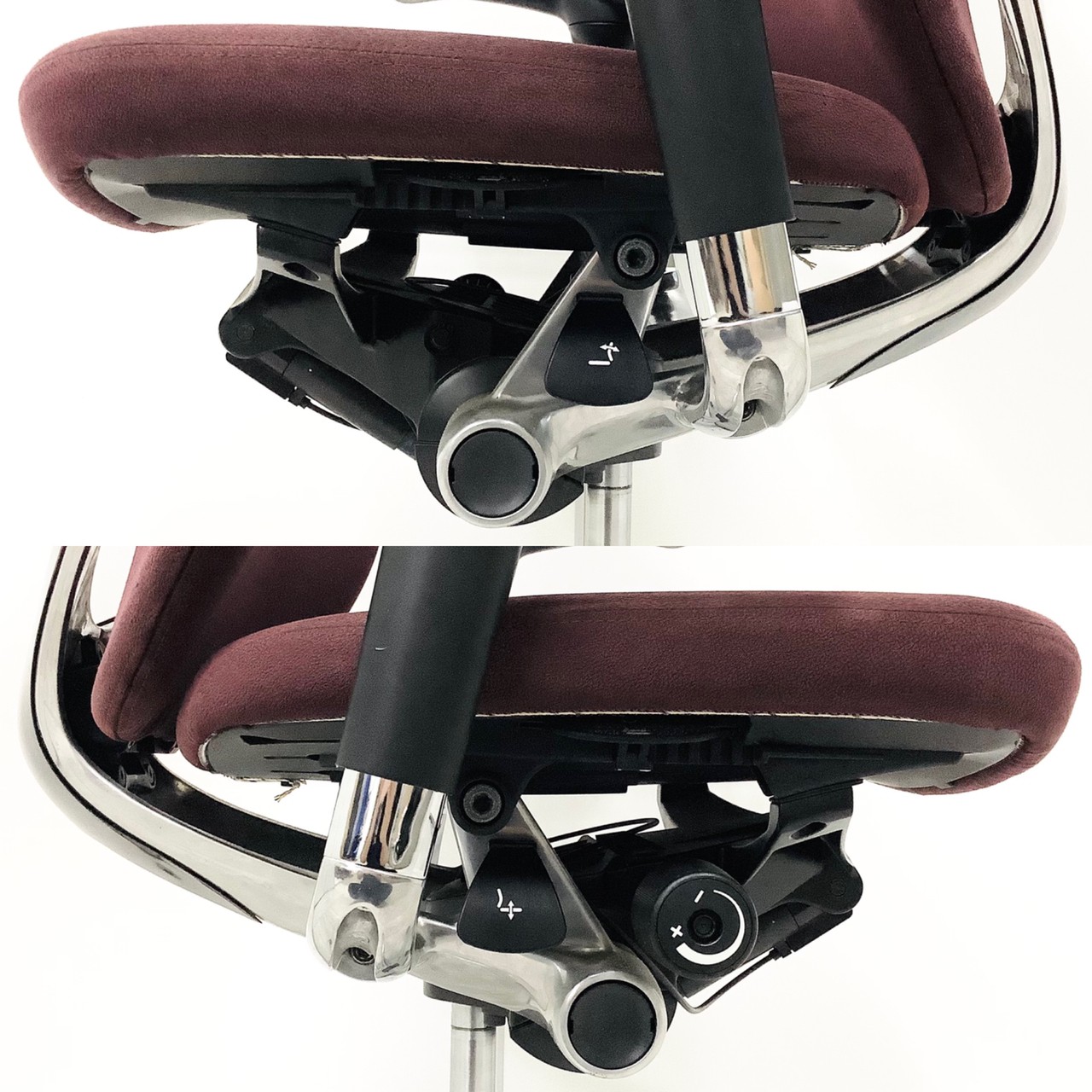 - 身体にフィットする自然な動きを実現するアンクルチルト®リクライニング。座面左下のレバーでお好みの角度に固定できます。 リクライニングの強弱は無段階で調整可能です。