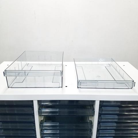 【書類・備品整理の必需品!書類や備品のストックにピッタリ!※1段目のみ浅型仕様】オカムラ レクトライン クリスタルトレー 書類 引き出し 透明 ケース ローキャビネット 整理 中古家具 オフィス家具 福岡 九州最大級《オフィスバスターズ福岡博多店は、福岡を拠点として、日本全国へ中古オフィス用品・オフィス家具を提供しております》