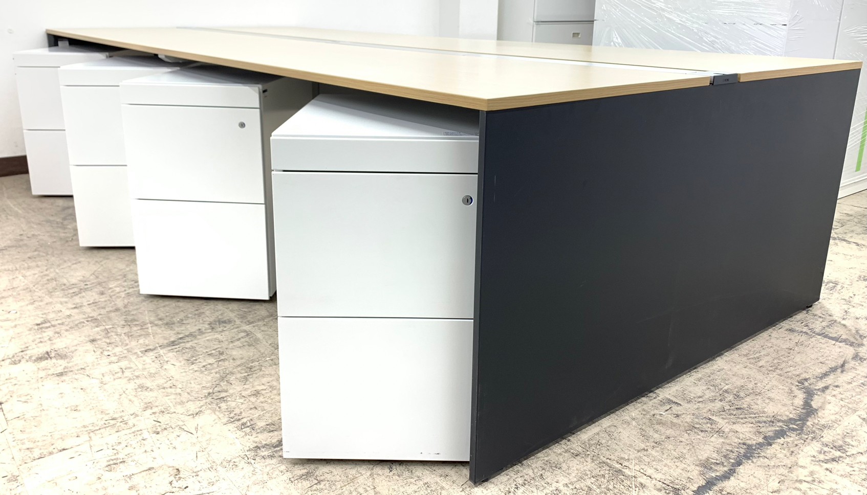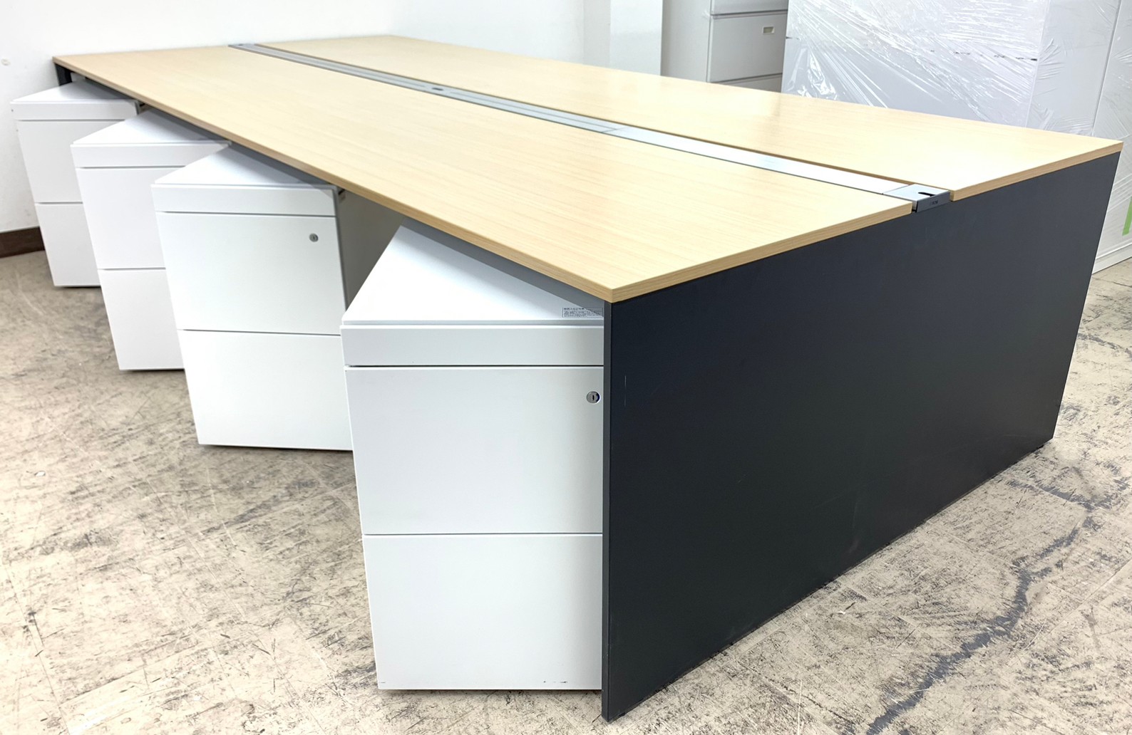 【幅3200mm】新時代デスクシステム⇒インターリンク(Inter Link)天板ナチュラル&エンド脚ブラック※フリアドワゴン4台セット◆イトーキ製【RP】- 埼玉本店
