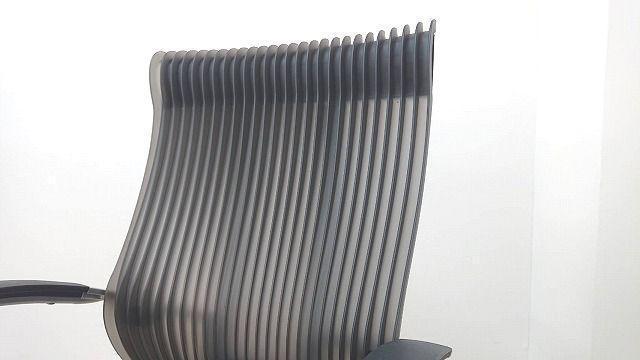 見た目は少し硬そうに見えるエラストマー素材ですが、座ってみると程よいしなり具合のやわらかな座り心地で、背中が痛くなるようなことはまるでありません。面ではなく線で支えることで、背面の通気性の良さは抜群です。