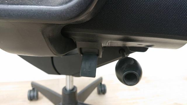 ロッキングは、任意の位置でロックすることが可能で、強さの調節は座面右下のグリップで座った状態で行えます。