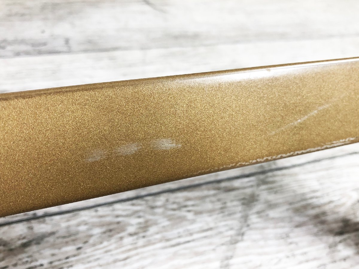- かなり強い濃い黄ばみ・変色が商品全体にある。(例、座面・背もたれ、脚部等にある。)
