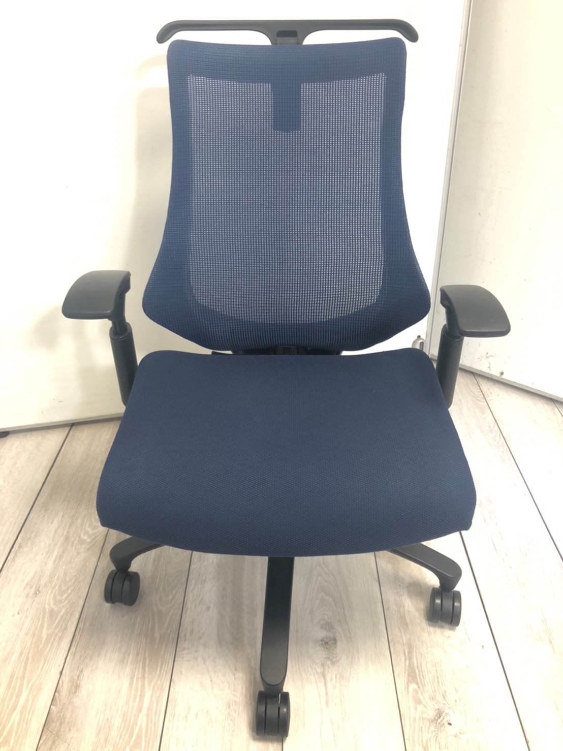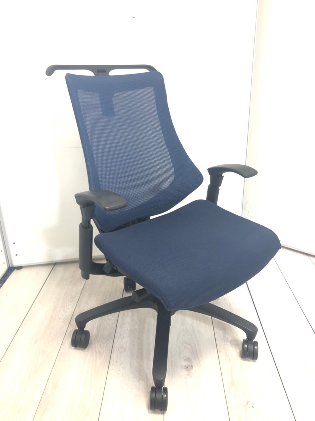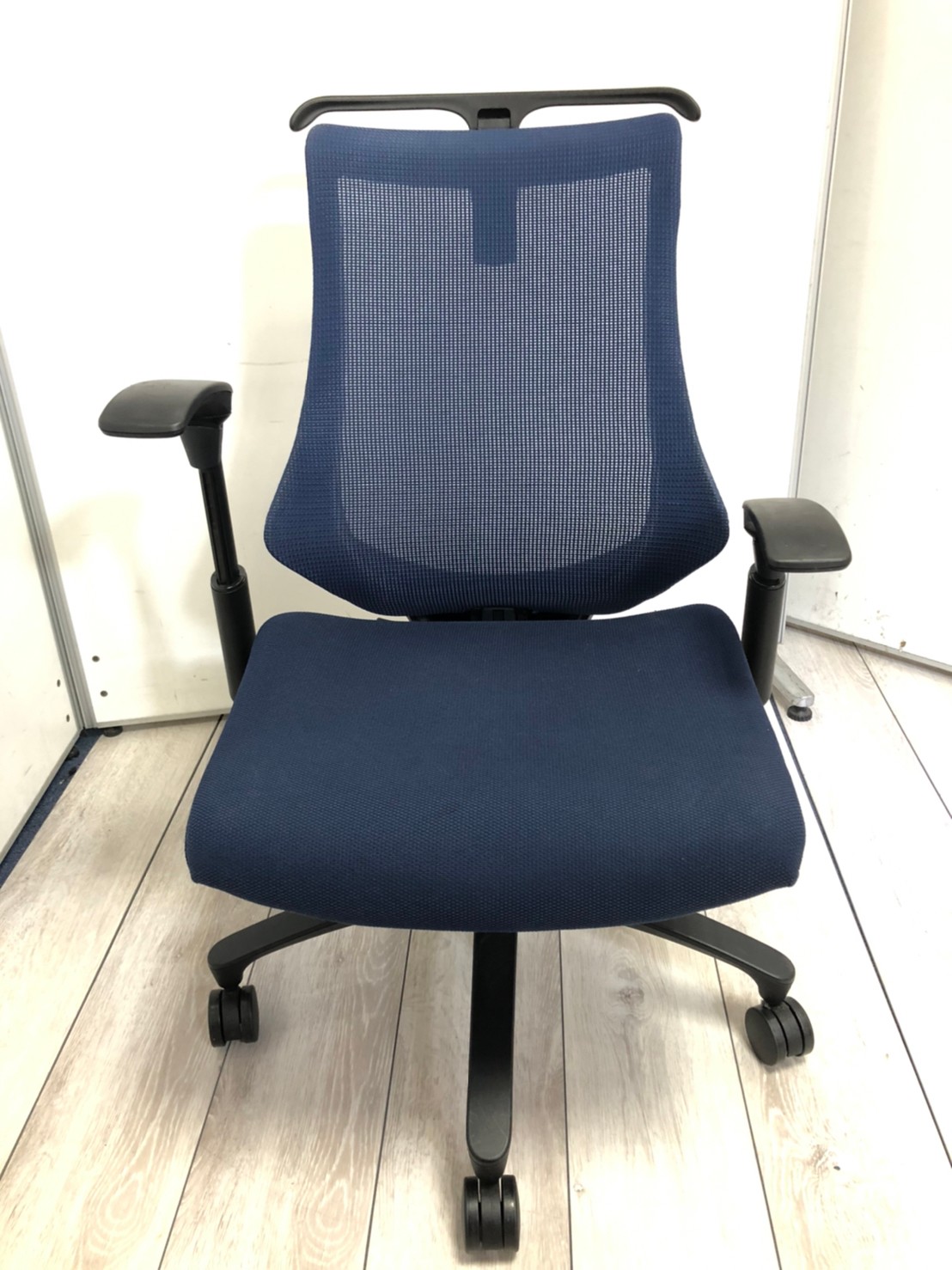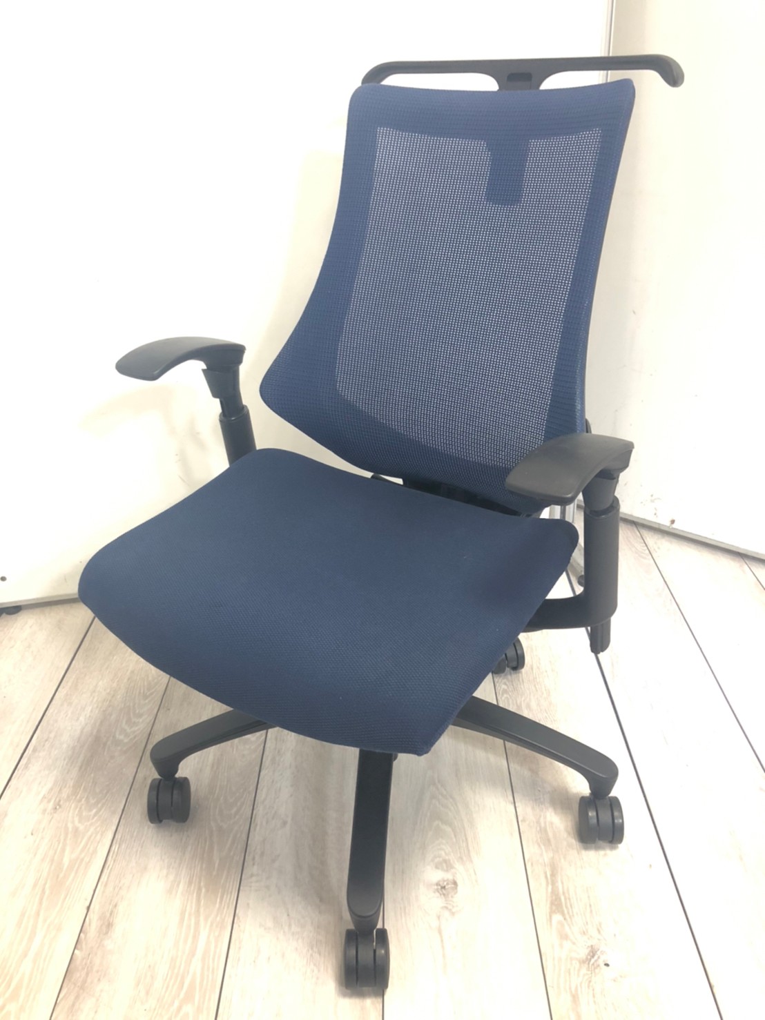 【最先端のデザインに快適な座り心地!】■イトーキ製 エフチェア 可動肘付 ネイビーブルー ■三次元フォルムが腰にフィット!【在庫入替セール品(本在庫限定価格)】