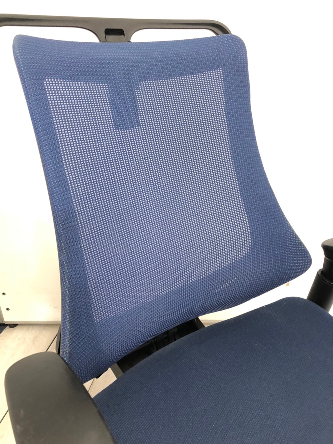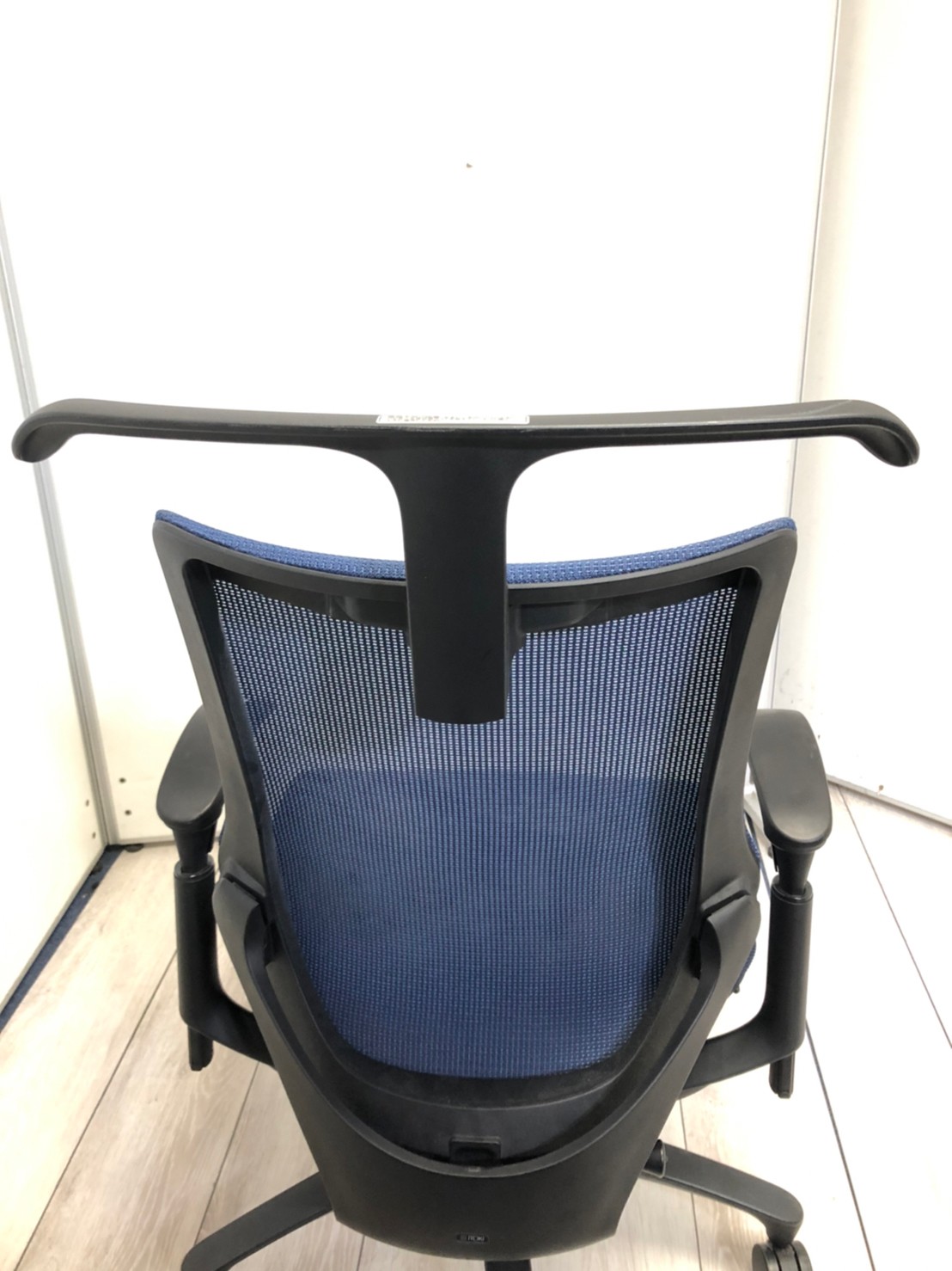 【姿勢の変化にフレキシブルに対応!スタイリッシュで座り心地も抜群な高機能チェア!】■イトーキ(ITOKI)製 エフ(f)チェア 肘付き ハイバック 背面メッシュ ■可動肘 ■ネイビーブルー ×ブラックシェル【2510】弊社使用欄【A01040263】