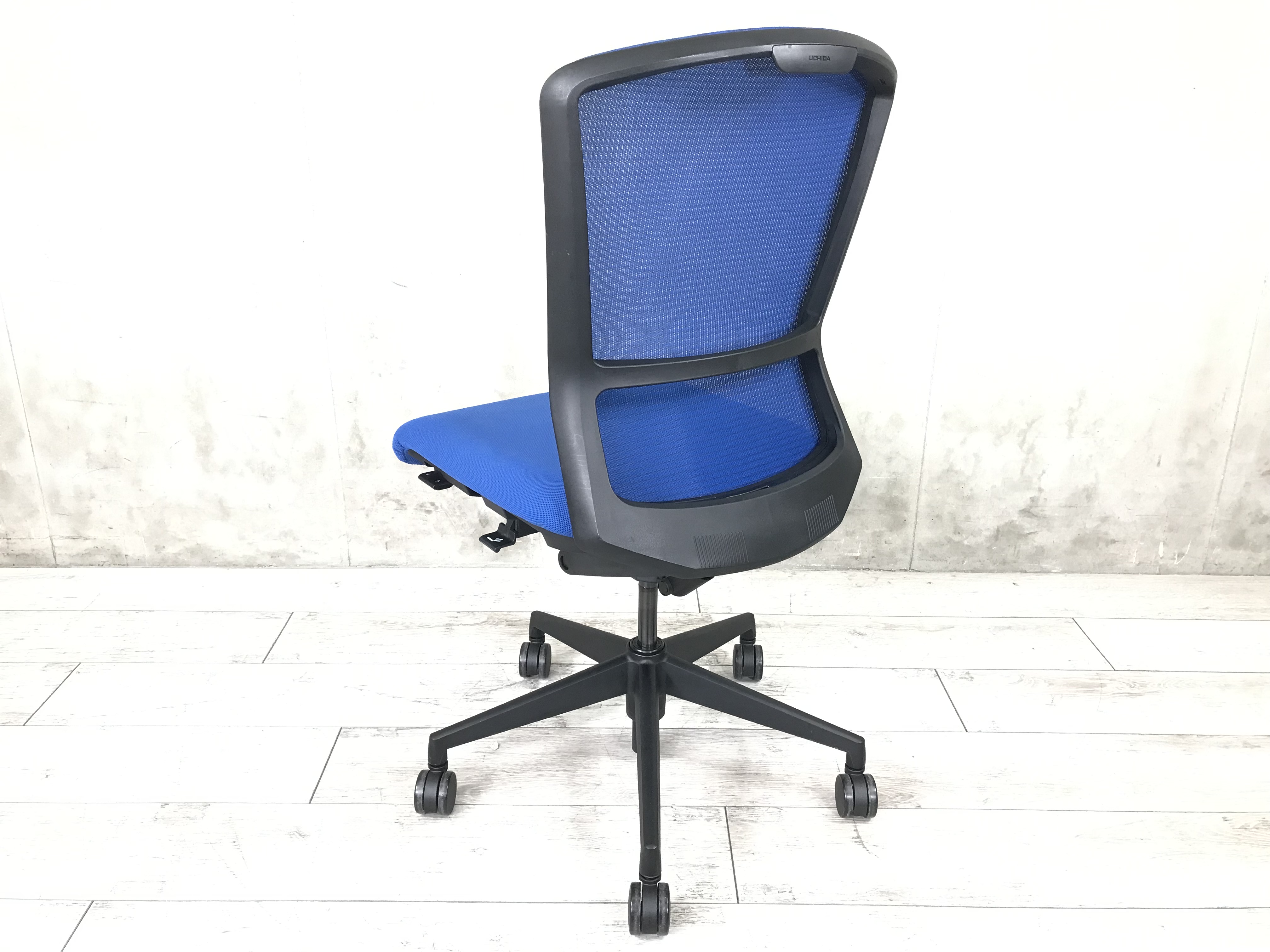 【5脚入荷】【洗練されたデザインで大人気!ワンランク上の座り心地!】■ウチダ (UCHIDA)製 エルフィ (ELFIE) 肘無ミドルバック ■背面メッシュ ■マリンブルー×ブラックフレーム ■ハンガー付 オフィスバスターズ 梅田本店