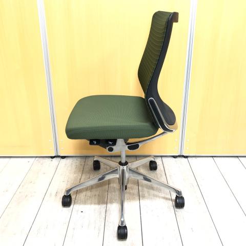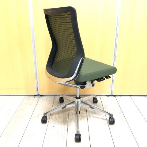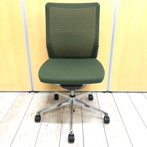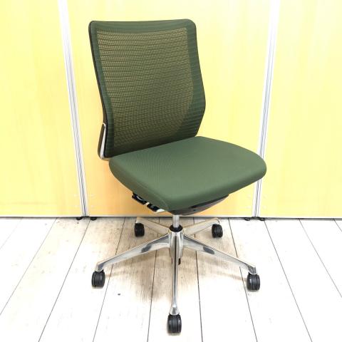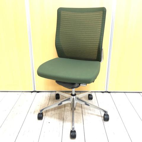 【在庫1脚商品】オカムラ コーラルチェア グリーン 肘なしローバック メッシュ 高機能- なんば日本橋店