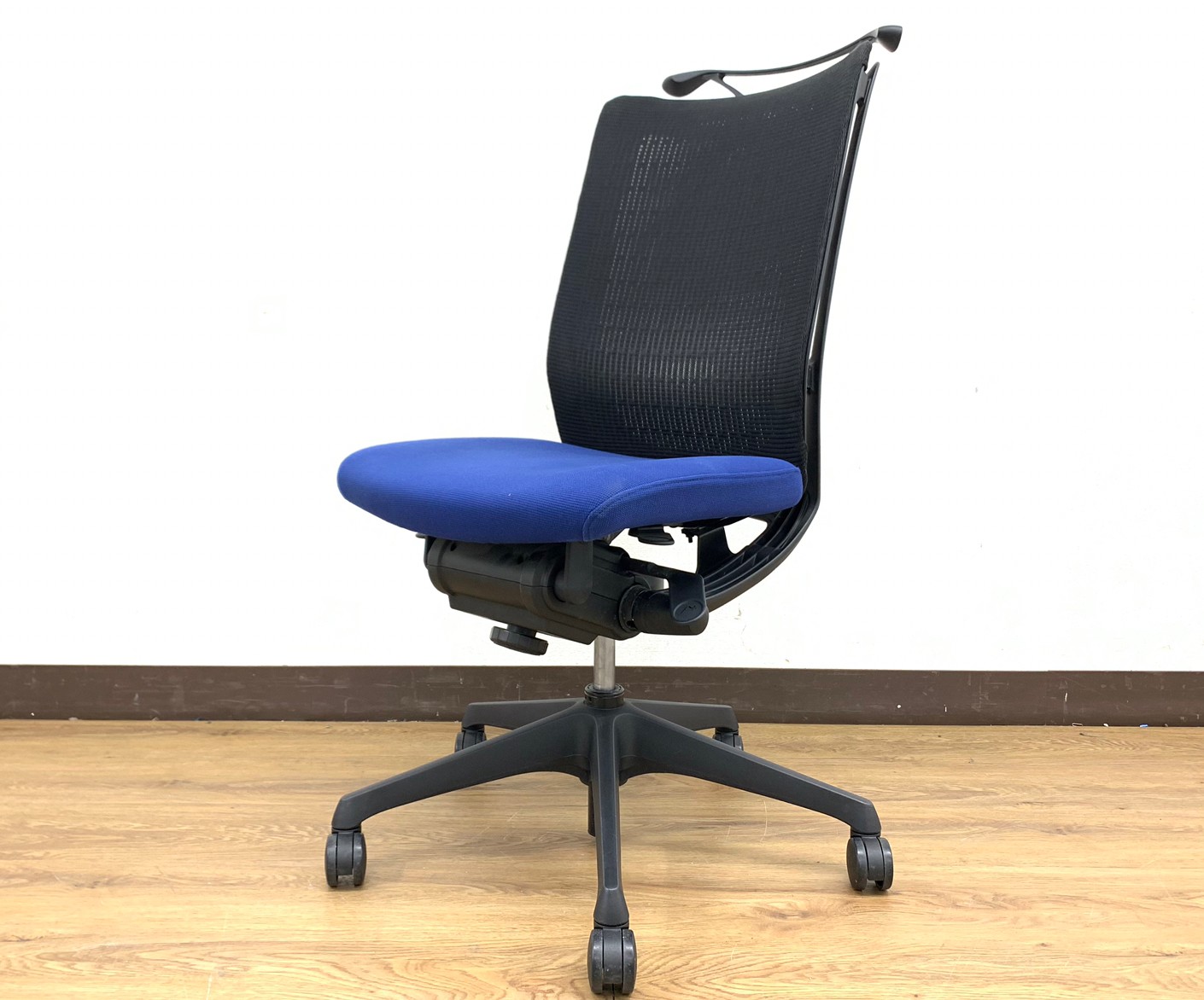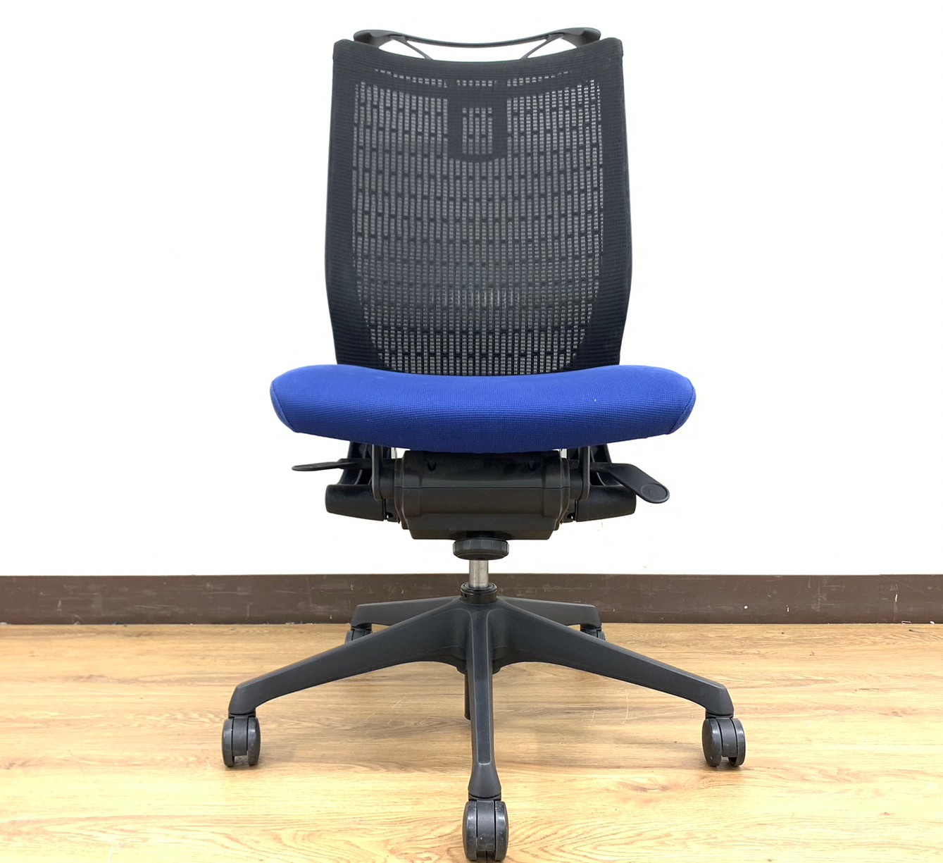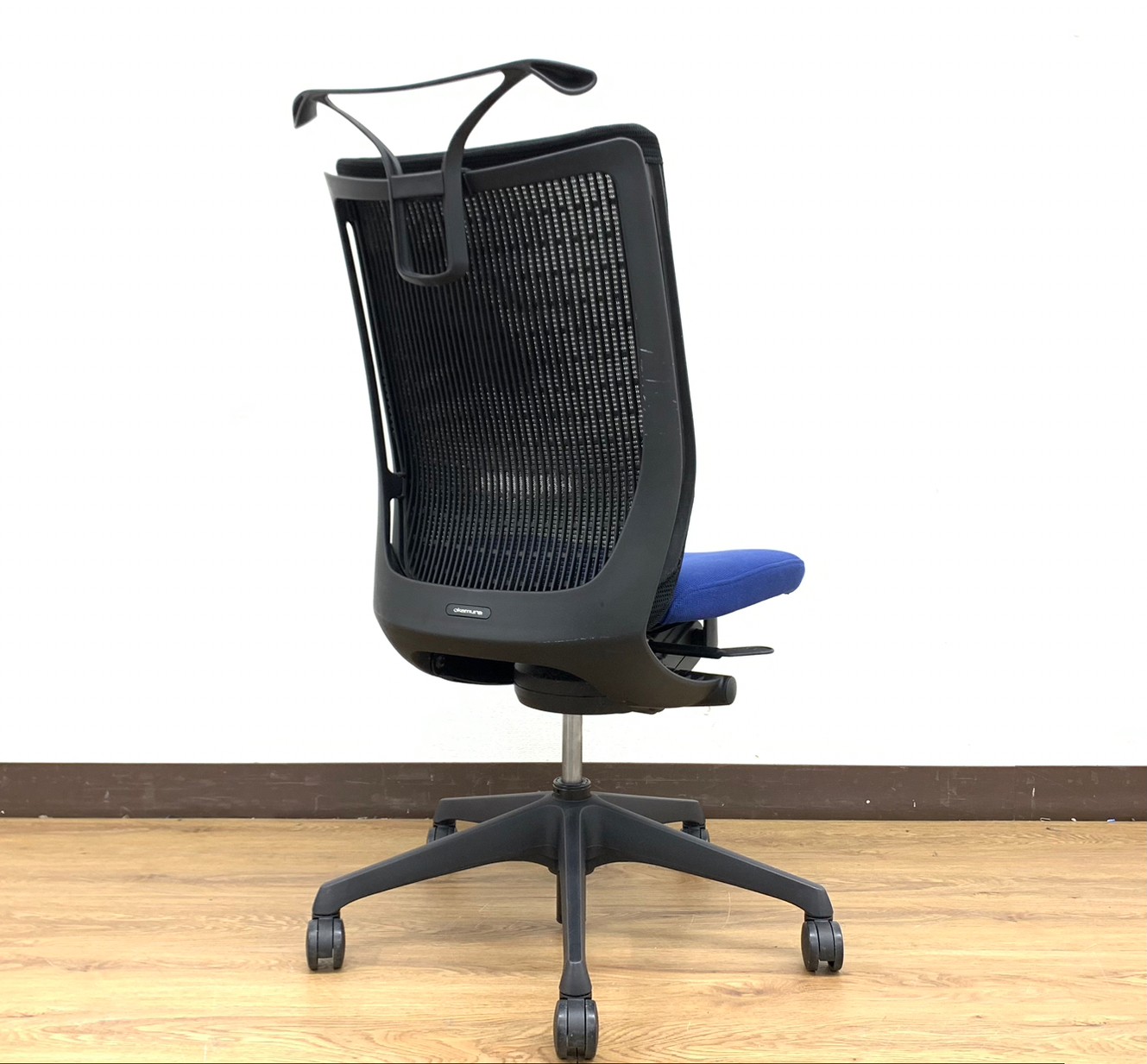 【その快適さにリピーター続出!】■オカムラ ヴィスコンテチェア ブルー メッシュタイプ ハンガー付- 川崎店