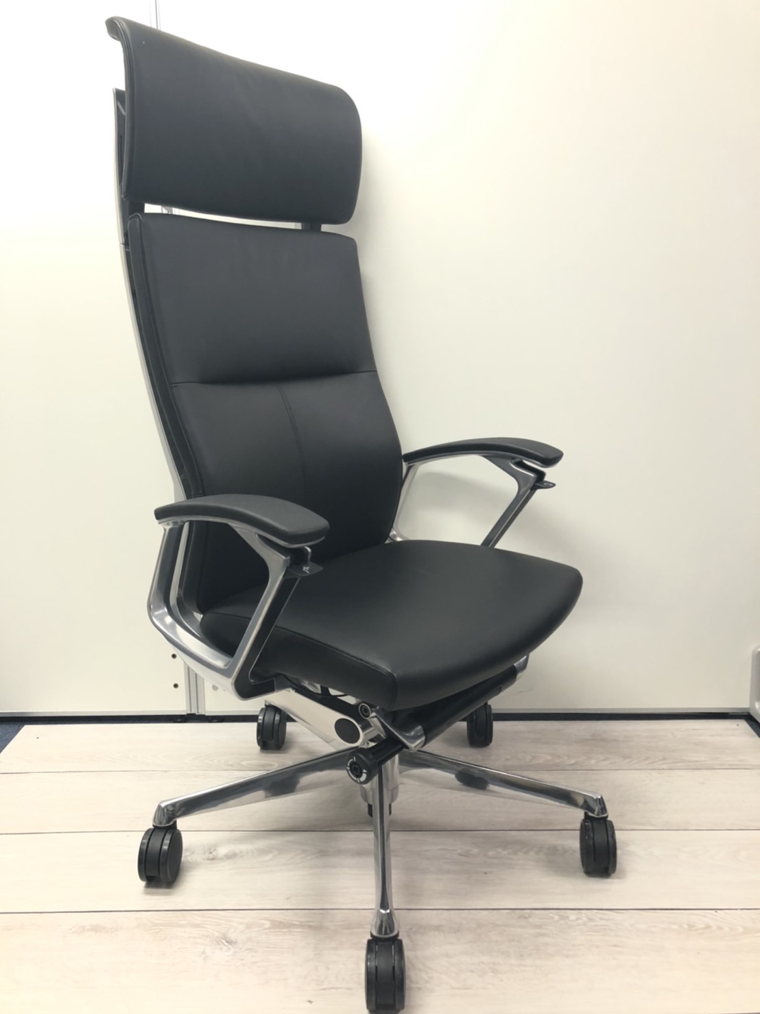 オカムラ製・『デューク』エクストラハイバックチェア入荷!!環境への配慮と大きめの背もたれと大きめのヘッドレストで優しく、しっかりと包み込み、くつろぐことができます。弊社使用欄【A00872856】- 名古屋本店