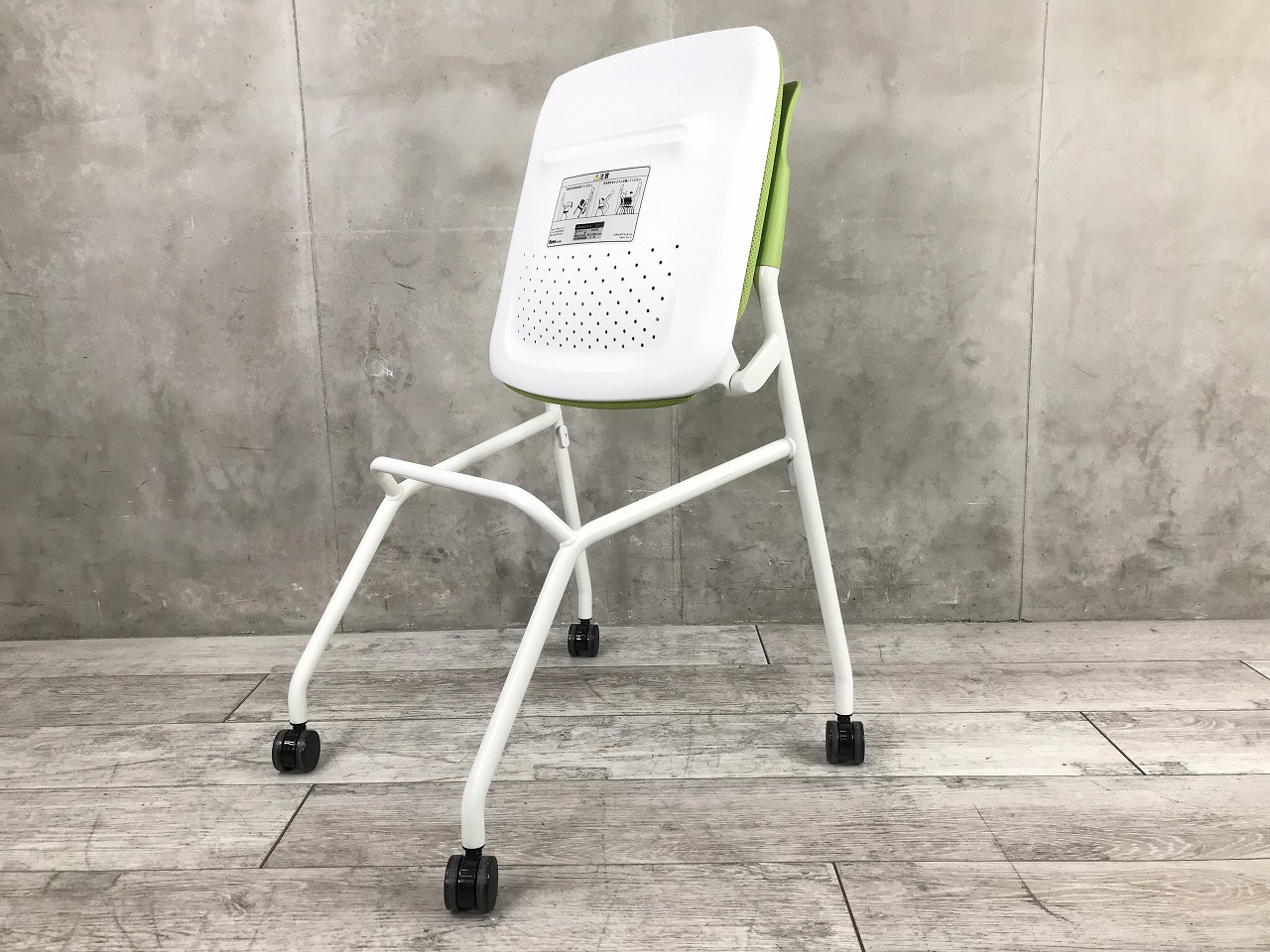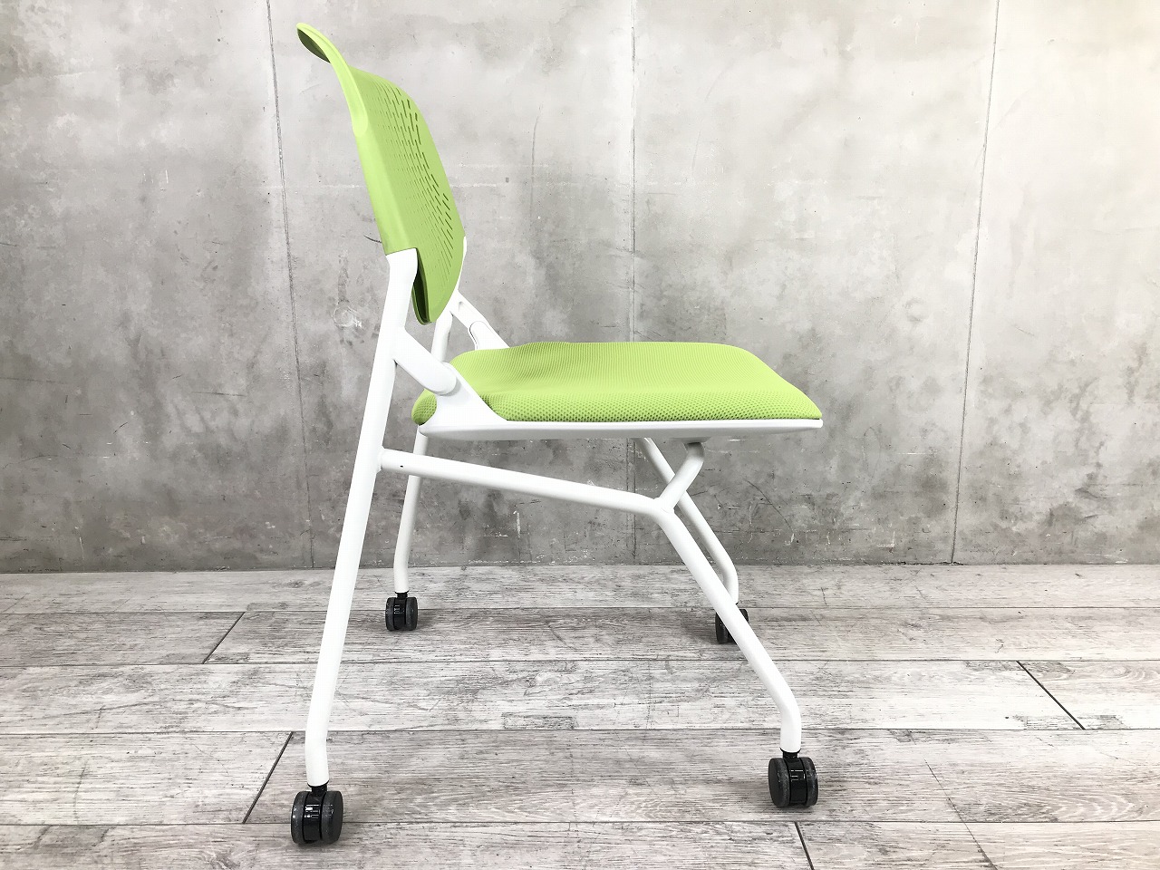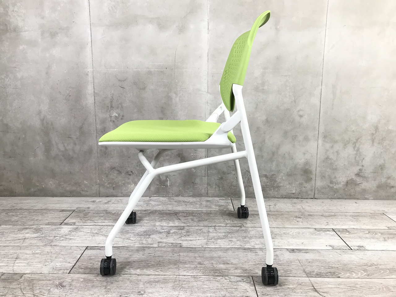 【T11】【T10】【商品入替のため、残り6脚限り】オカムラ製 ルナシリーズ ライムグリーン ホワイトフレーム 軽快なデザインが人気 ネスティングチェア!!