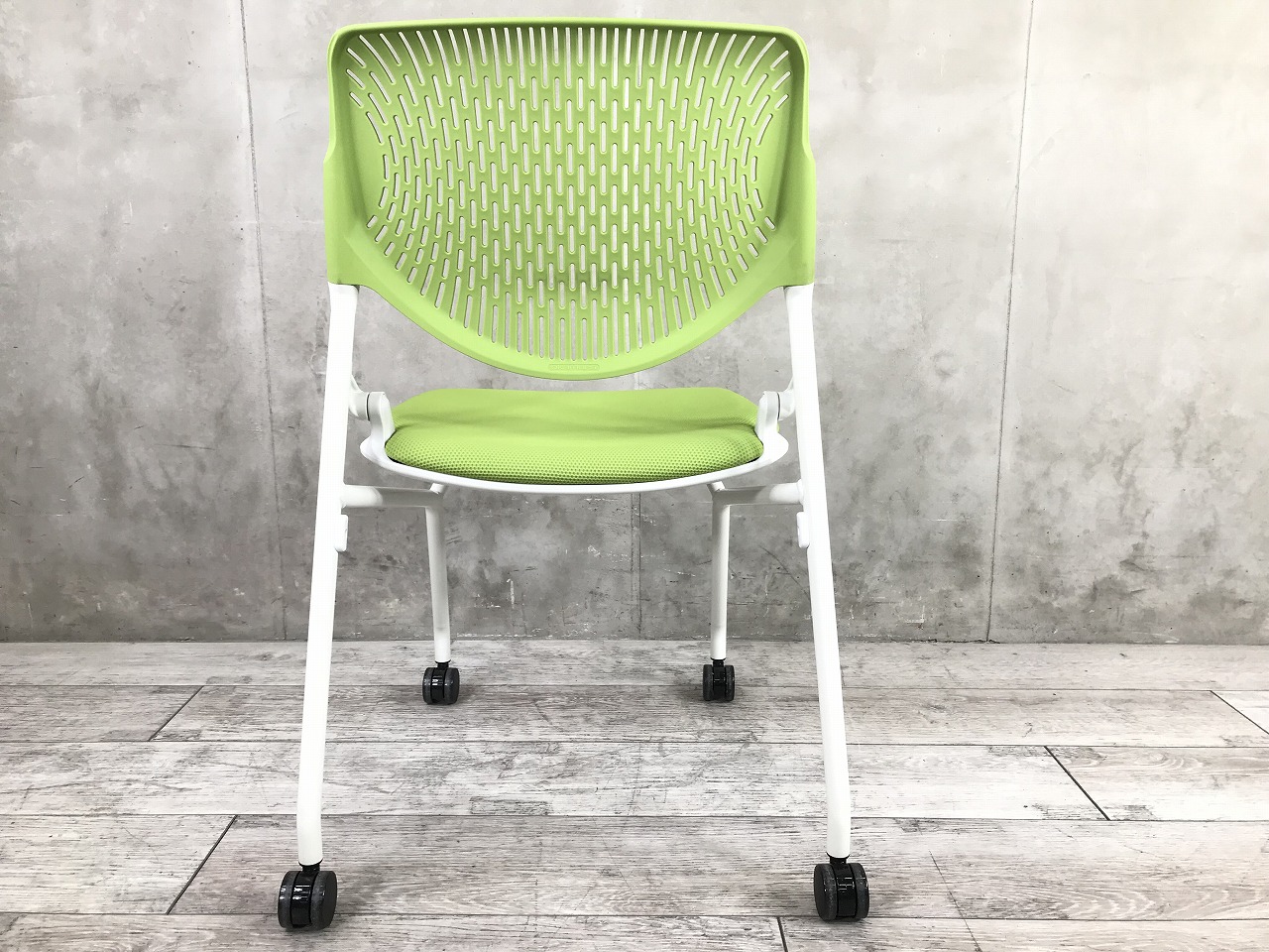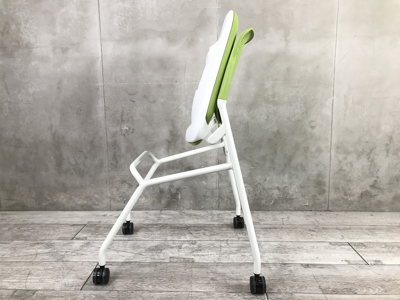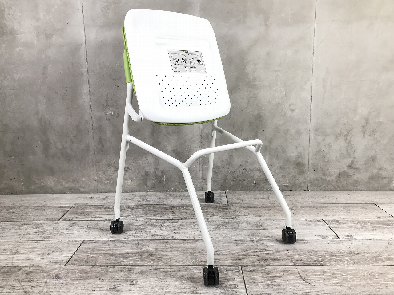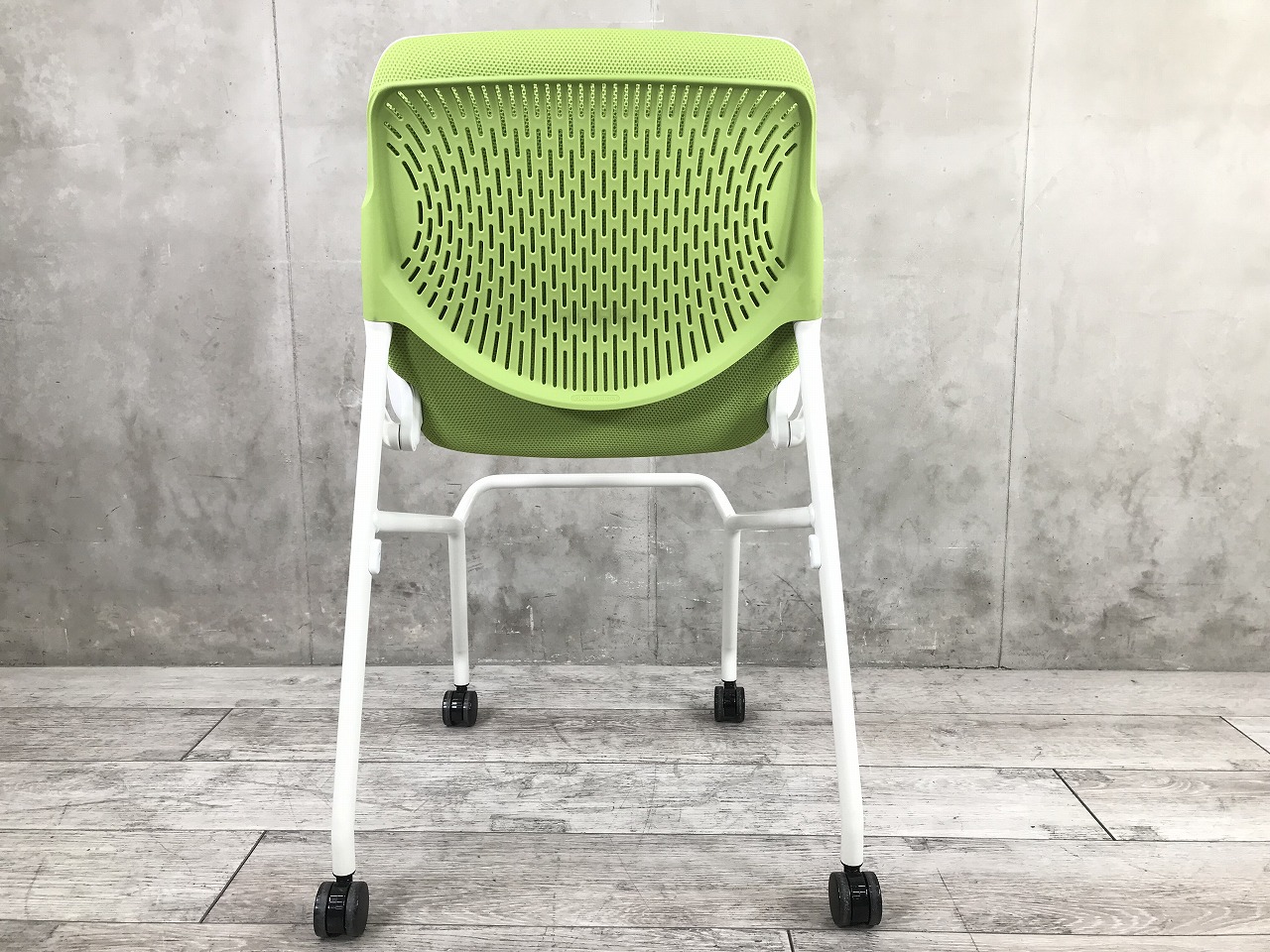 【T11】【T10】【商品入替のため、残り6脚限り】オカムラ製 ルナシリーズ ライムグリーン ホワイトフレーム 軽快なデザインが人気 ネスティングチェア!!