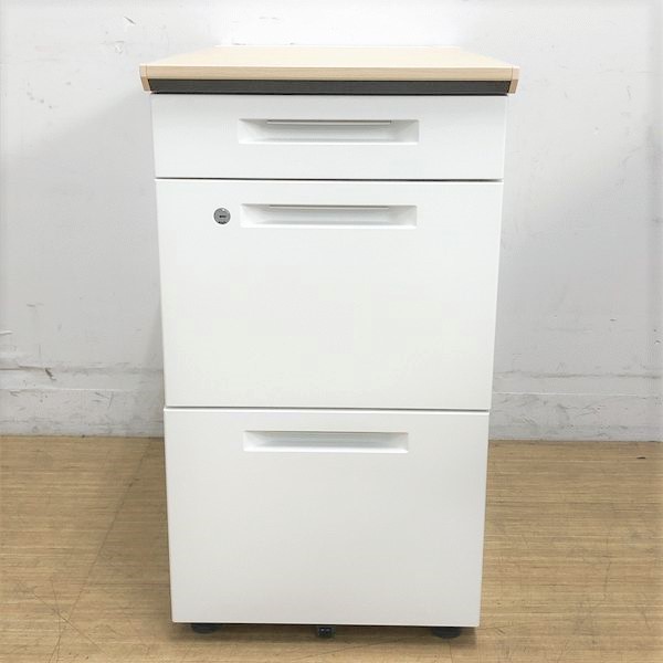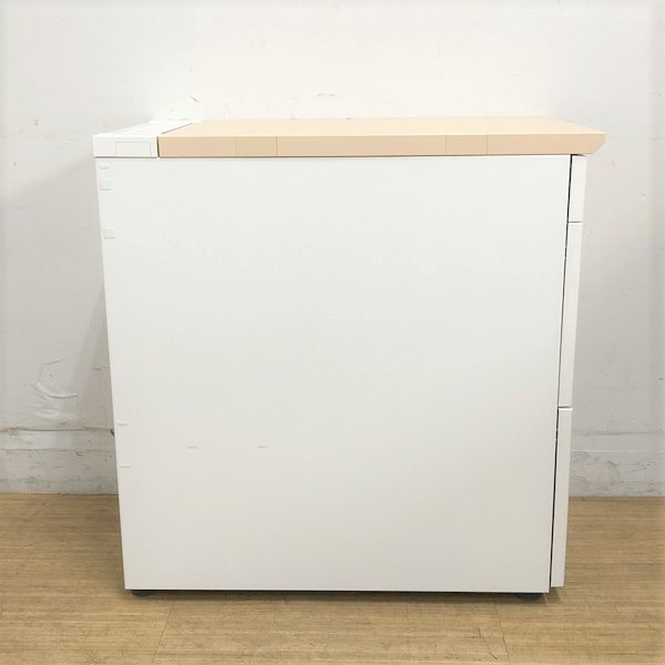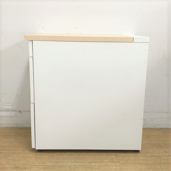 【収納と作業スペースを同時に確保!フリアドデスクや平机のお供に!】■コクヨ(KOKUYO)製 アイエス(iS)シリーズ 3段脇机 ■W400×D700×H720㎜ ■本体:ホワイト 天板:木目ナチュラル ■シリンダー錠