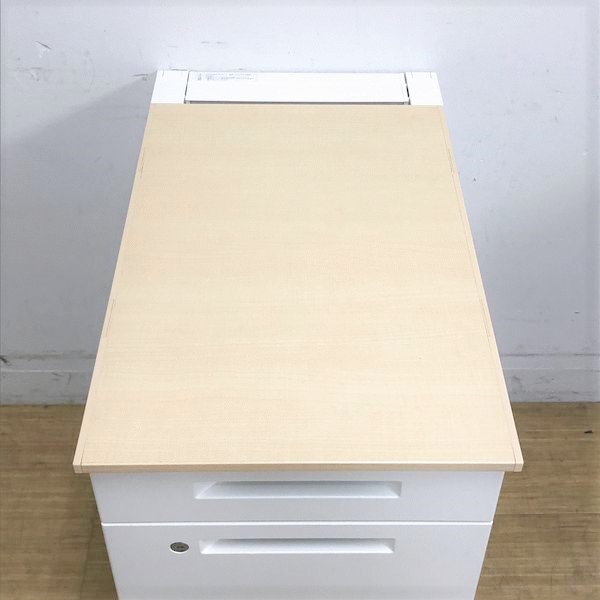 【在庫セール品・8台限定】■コクヨ(KOKUYO) iS(アイエス)シリーズ 3段脇机 ■W400×D700×H720㎜ ■ホワイト/天板:木目ナチュラル ■シリンダー錠【収納と作業スペースを同時に確保!フリアドデスクや平机のお供に!】