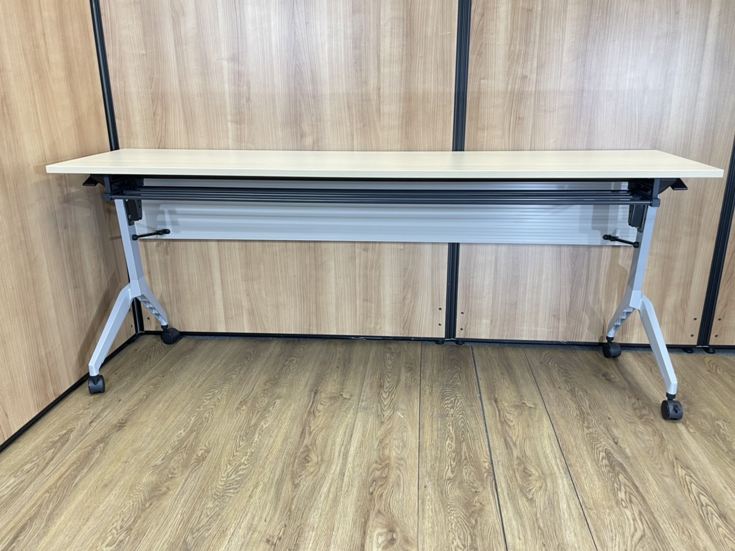 【状態良好!2021年製の内田洋行製】ウチダ パラグラフ サイドスタックテーブル 木目ナチュラル 棚板なし 幕板なし 会議机 収納 折り畳みテーブル セミナー用 福岡 中古家具 安い 九州最大級《オフィスバスターズ福岡博多店は、福岡を拠点として、日本全国へ中古オフィス用品・オフィス家具を提供しております》