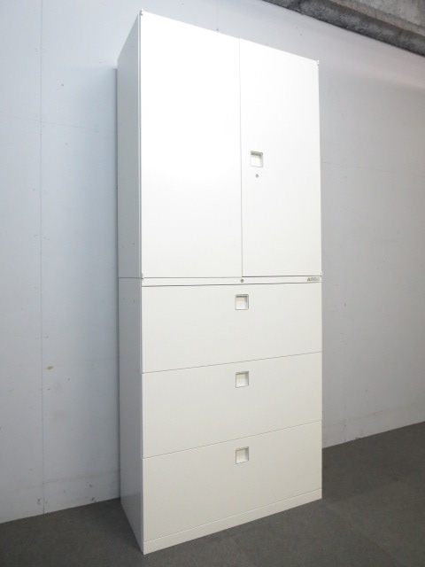 ☆H2150mm!【書庫探しに迷ったらコレ!】■オカムラ製 上下書庫セット(両開き+3段ラテラル) レクトラインシリーズ ホワイト ■省スペースに大量収納!オフィスの書類をまとめて整理!【Okamura Rectline】