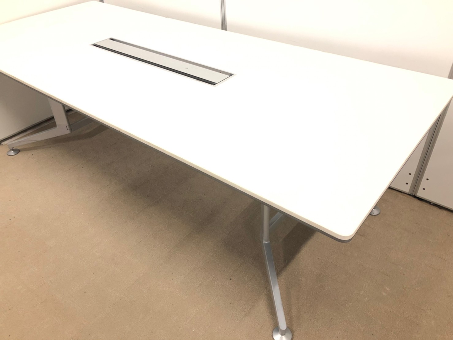 【限定1台!】高品質大型テーブルが入荷!清潔感のあるホワイト天板!横幅2400㎜奥行1000㎜の6~8人用タイプ!配線口付 ■コクヨ/W-300/ホワイト- 立川・八王子店