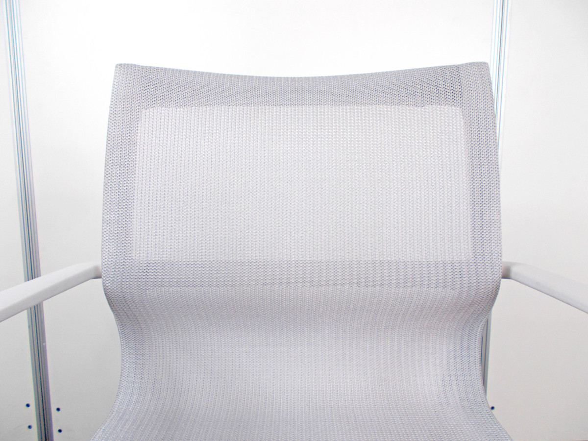 2本のサイドフレームの間に弾力性に富んだファブリックを張り、シートシェルを一体化したオフィスチェア。