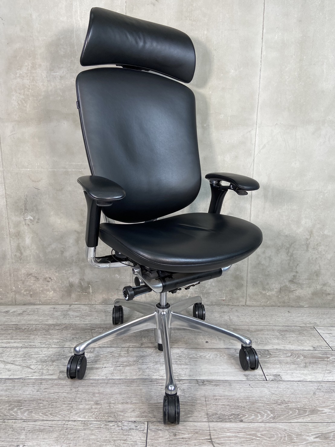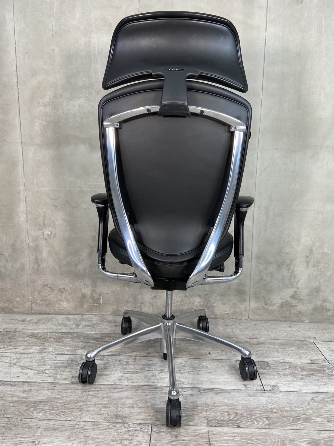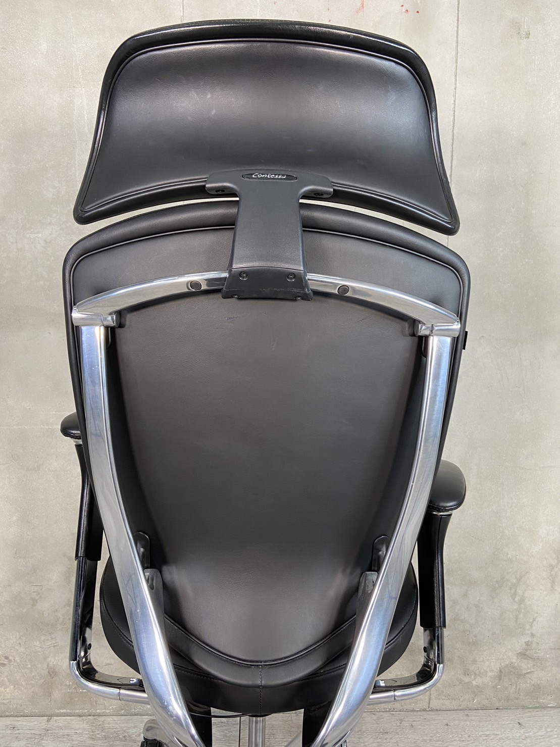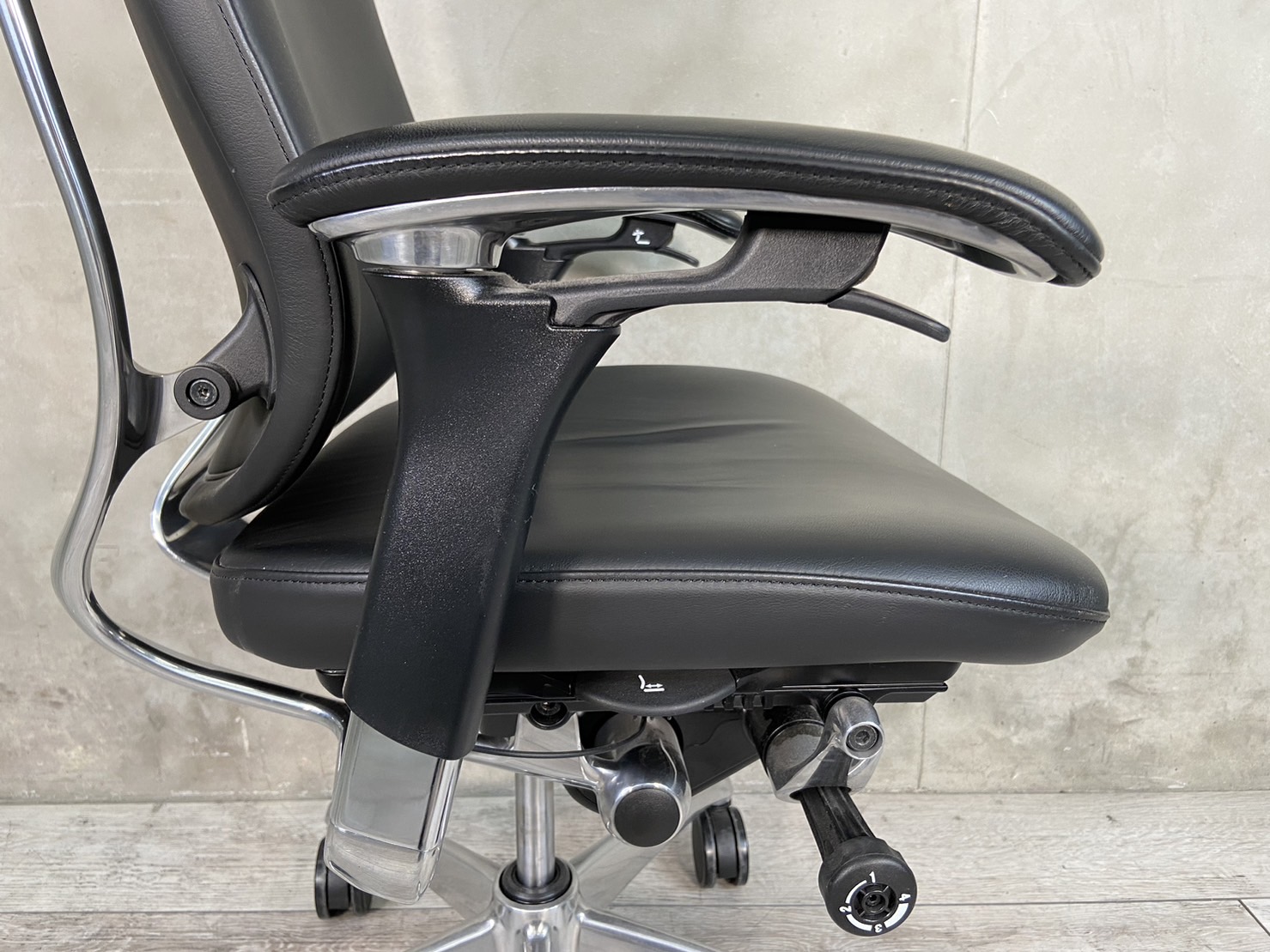 【極上の座り心地!】■コンテッサチェア 大型ヘッドレスト付 ポリッシュフレーム 背座総革張り 可動肘【デスクチェアの最上級(Contessa)】- 川崎店