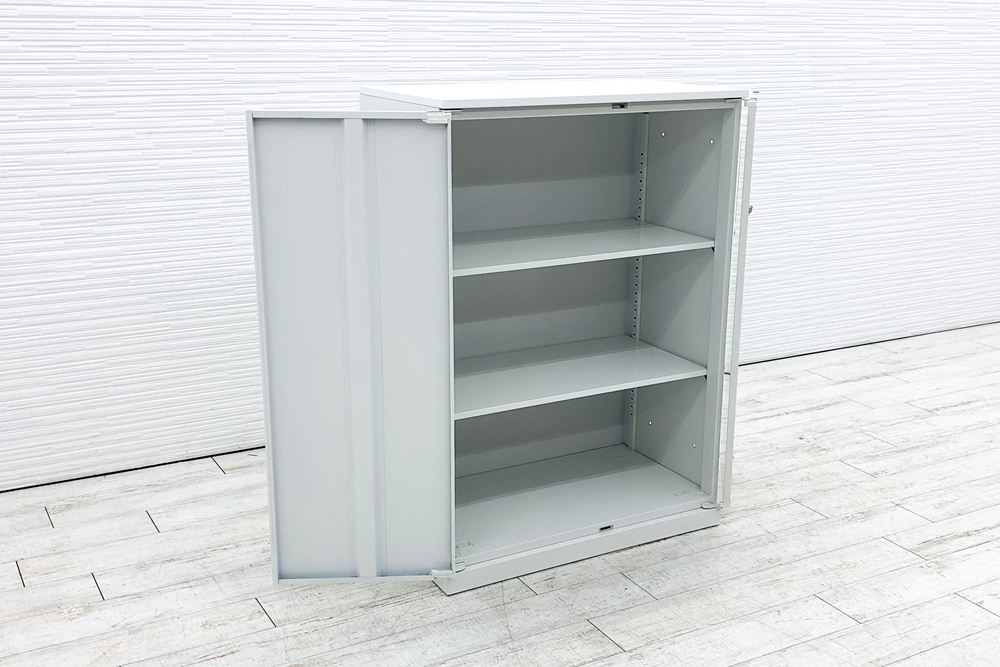 【在庫入替セール品!】人気の観音開きタイプ!取っ手が大きく使い勝手のよい定番キャビネット! ■内田洋行/HSシリーズ/ホワイト 天板ナチュラル