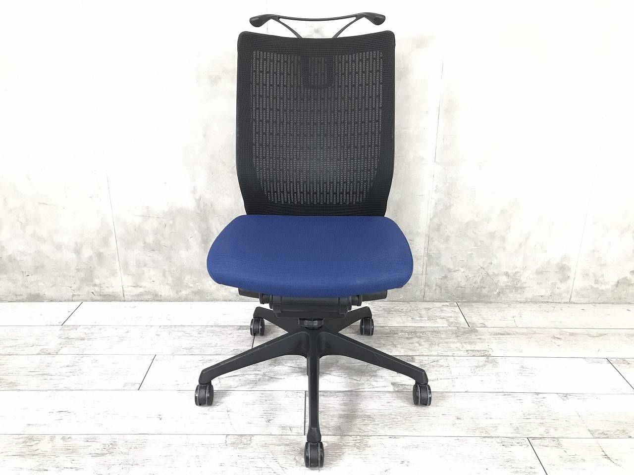 【在庫入替セール品】オカムラ(okamura)ヴィスコンテチェア ■色:ブルー(ブラックシェル)肘無し ハイバック仕様