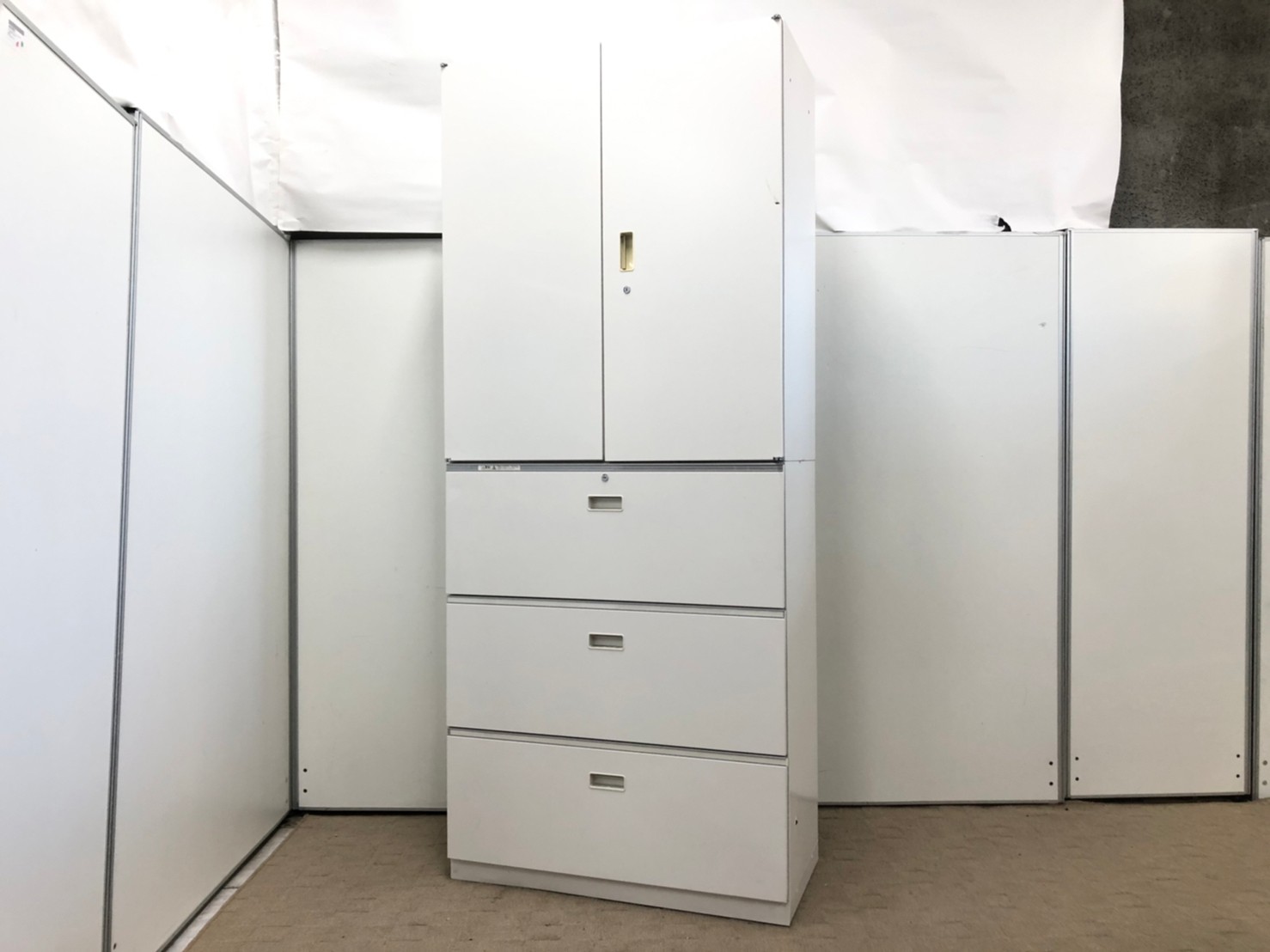 - 一部不具合ありそ引出の開閉不可、施錠不可、棚板無しといったの書庫の本来の効用を果たすための機能以外の一部が使用不可(例、扉、引出の開閉がしづらいなどがある。 )