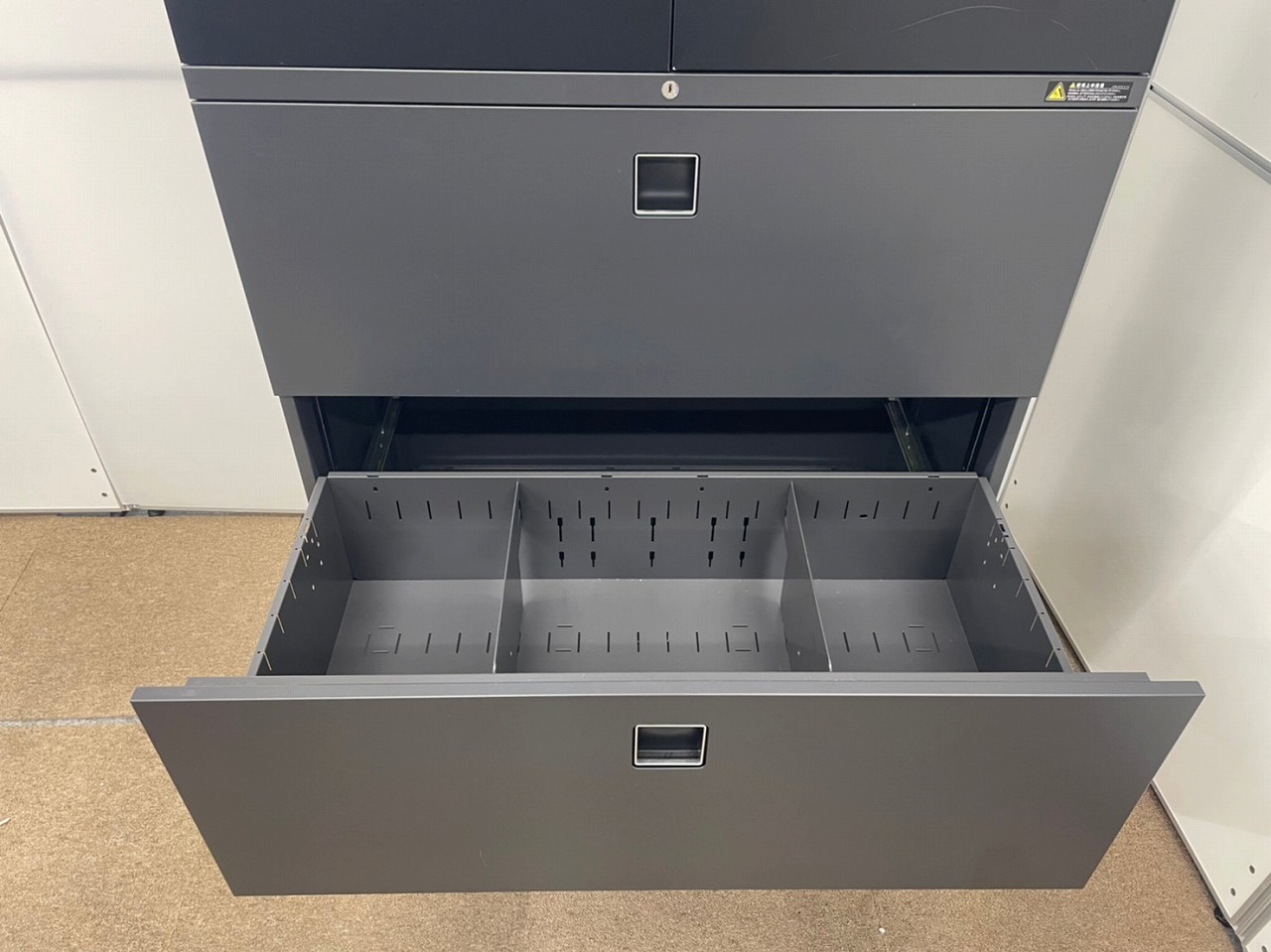 - 多数不具合あり引出の開閉不可、施錠不可、棚板無しといったその書庫の本来の効用を果たすための機能以外の多数が使用不可(例、扉、引出の開閉がしづらいなどがある。 )