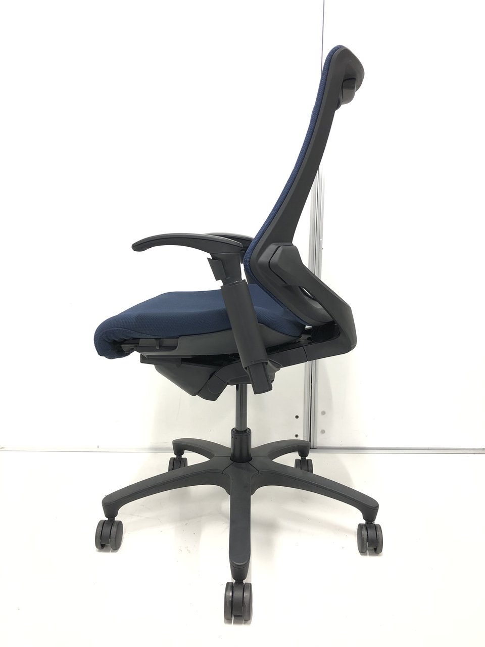 【1脚限定の為、クレジット決済優先!】【姿勢の変化にフレキシブルに対応!スタイリッシュで座り心地も抜群な高機能チェア!】■イトーキ(ITOKI)製 エフ(f)チェア 肘付き ハイバック 背面メッシュ ■可動肘 ■ネイビーブルー ×ブラックシェル