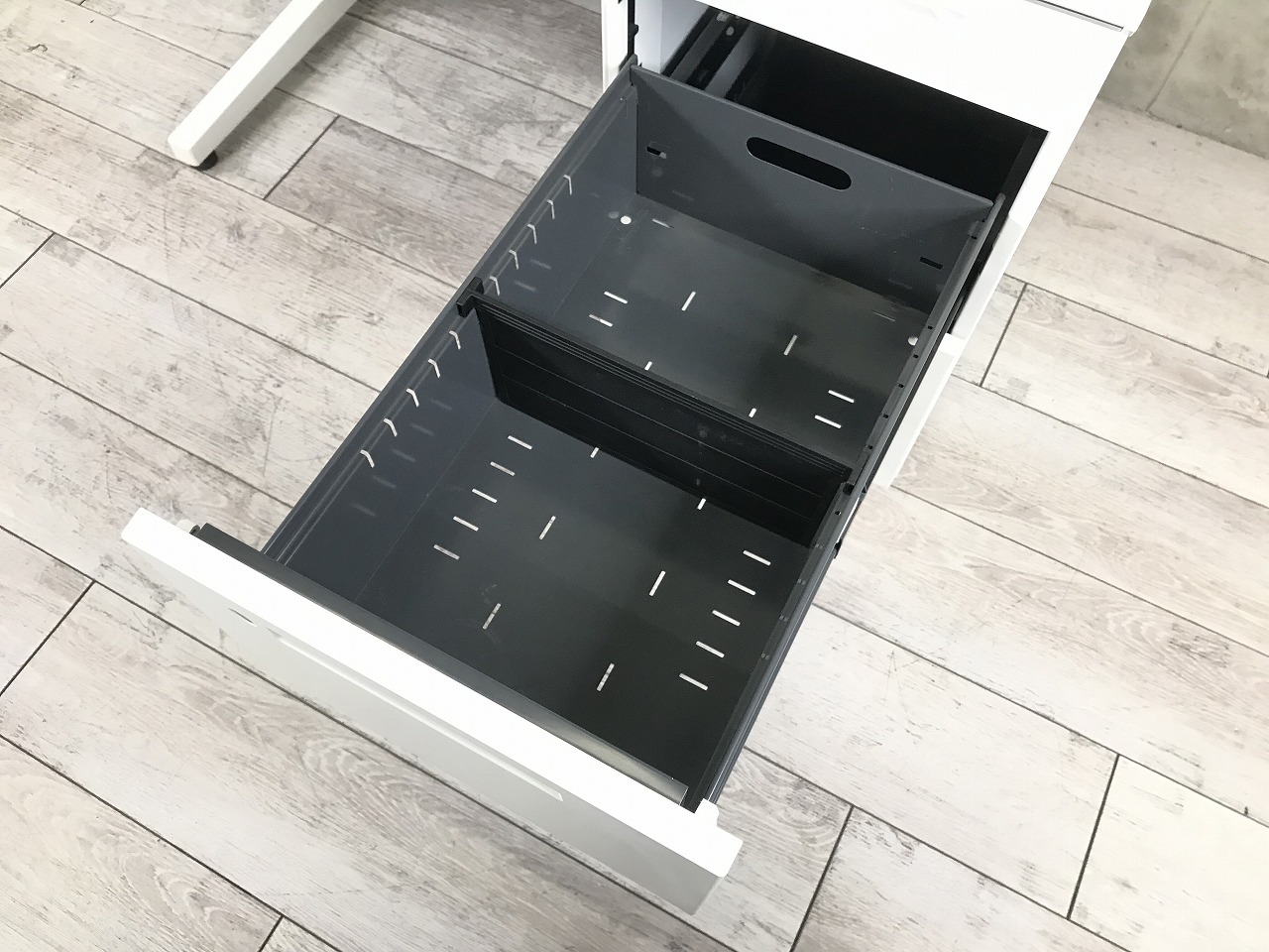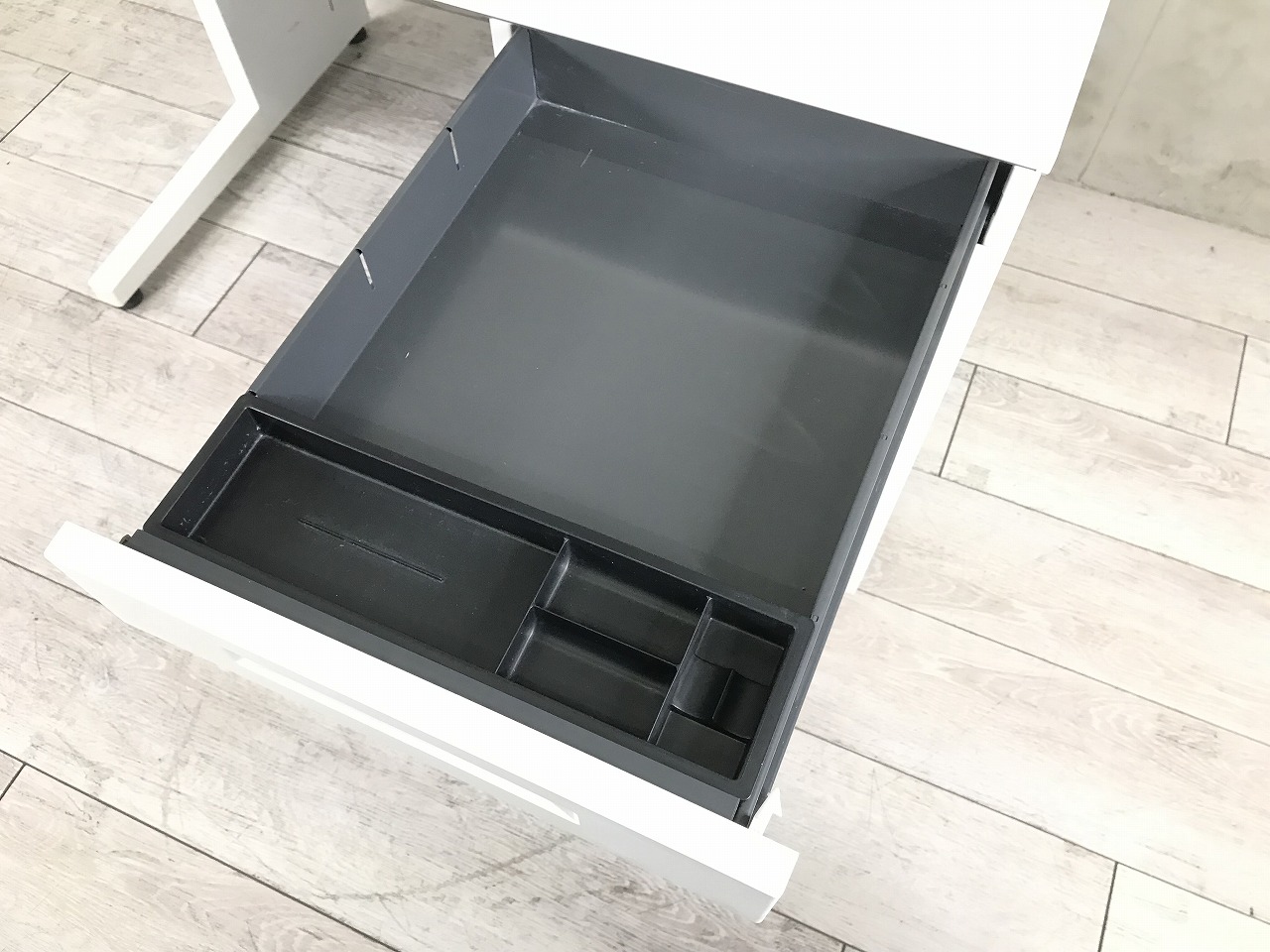 こちらのデスクは袖引出しの下2段が、A4用紙サイズのファイル収納が可能です。