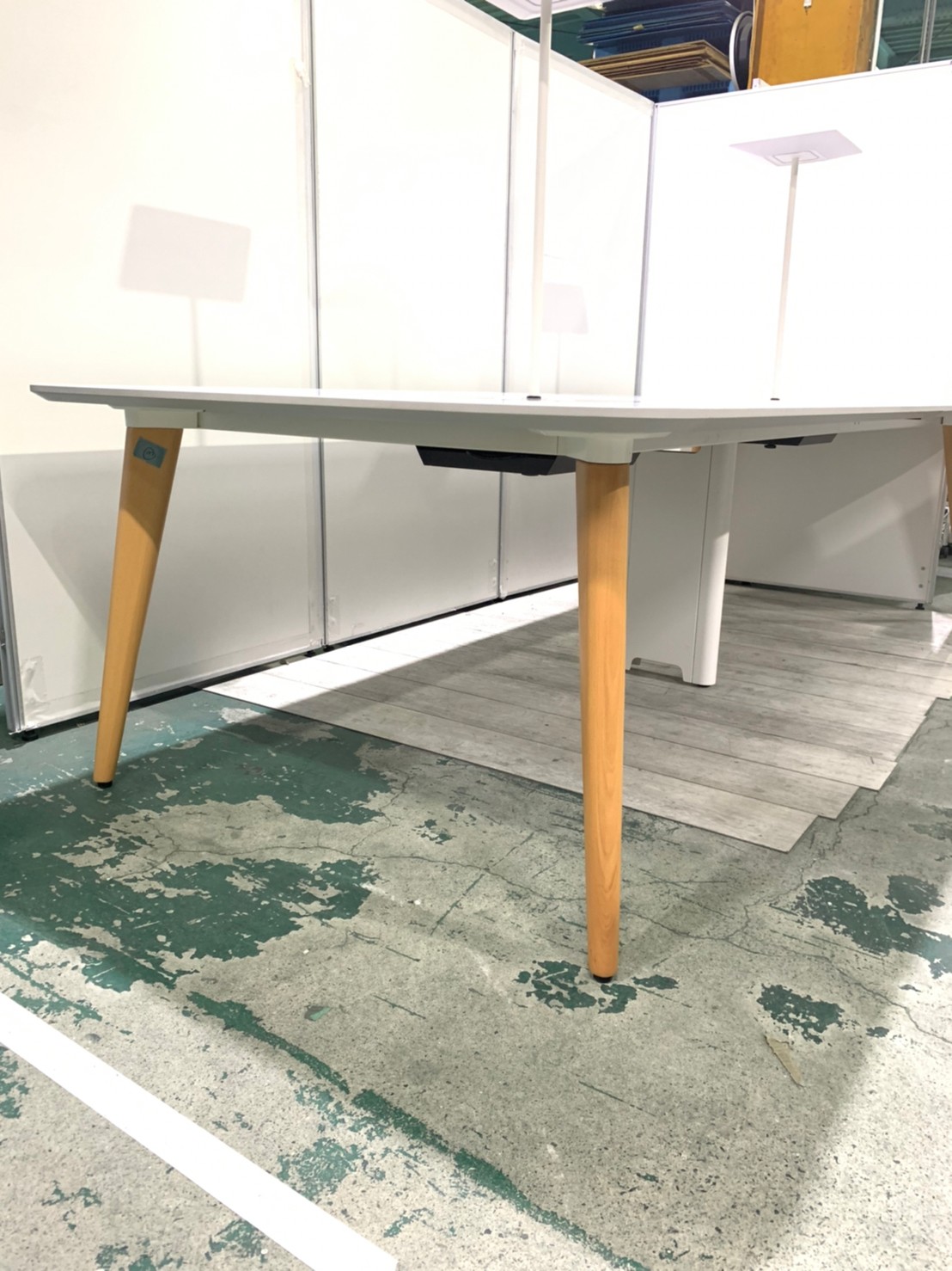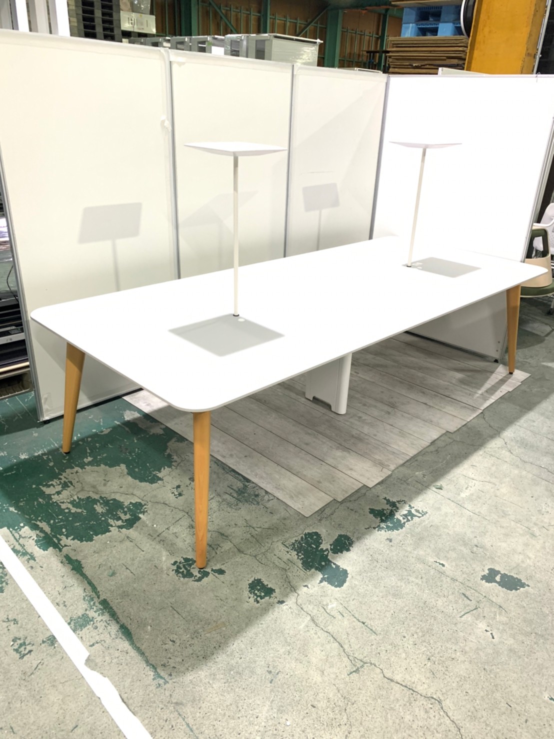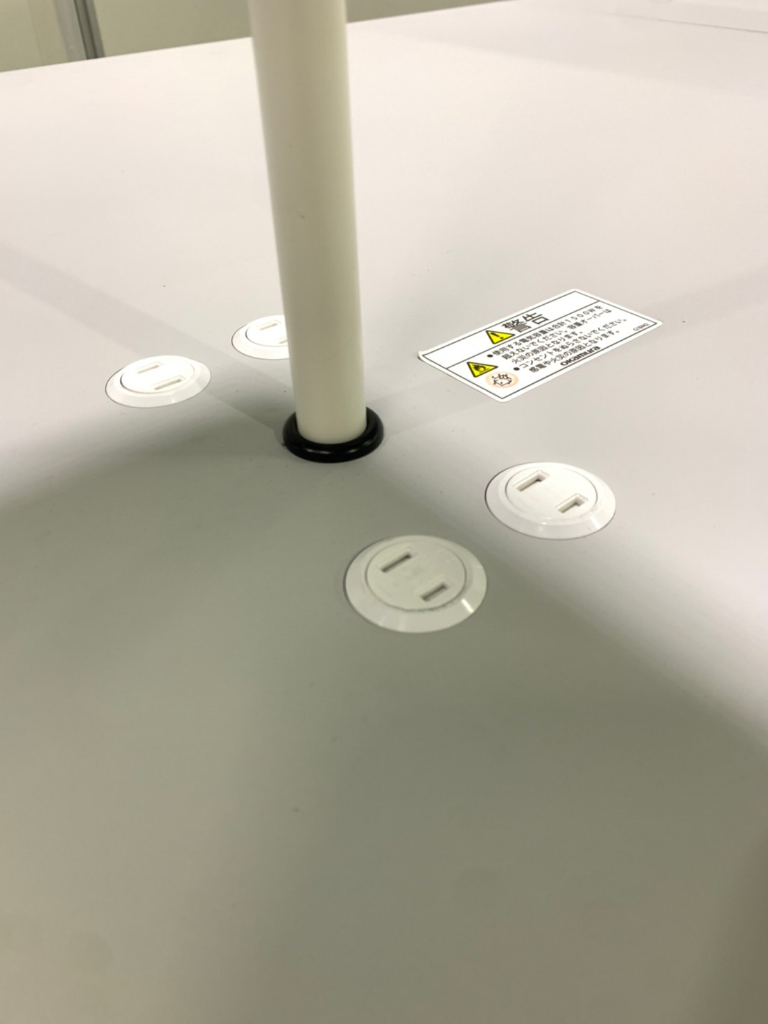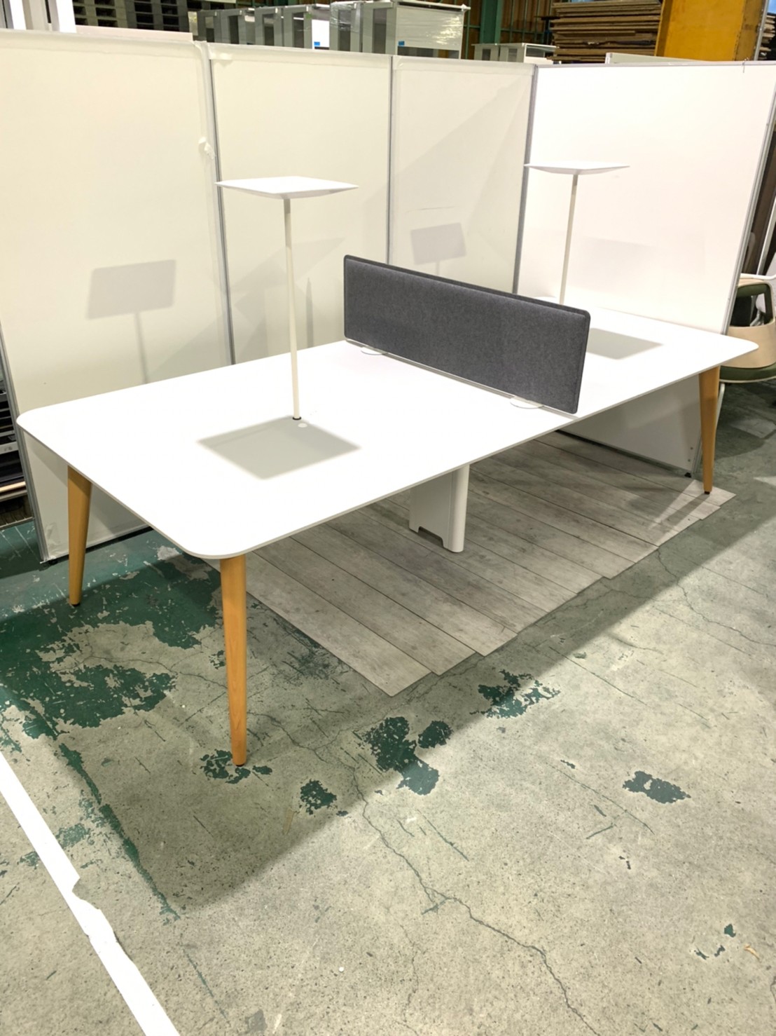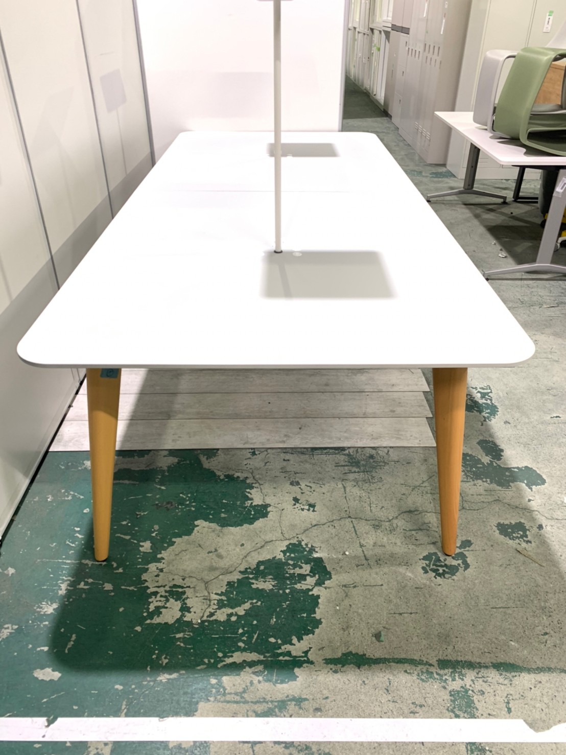 【トレンド】憧れのワークテーブル入荷 オカムラ Lives(ライブス)脚ナチュラル 天板ホワイト コンセント付 照明付 スタンドパネル付き 会議 ミーティング- 東大阪店