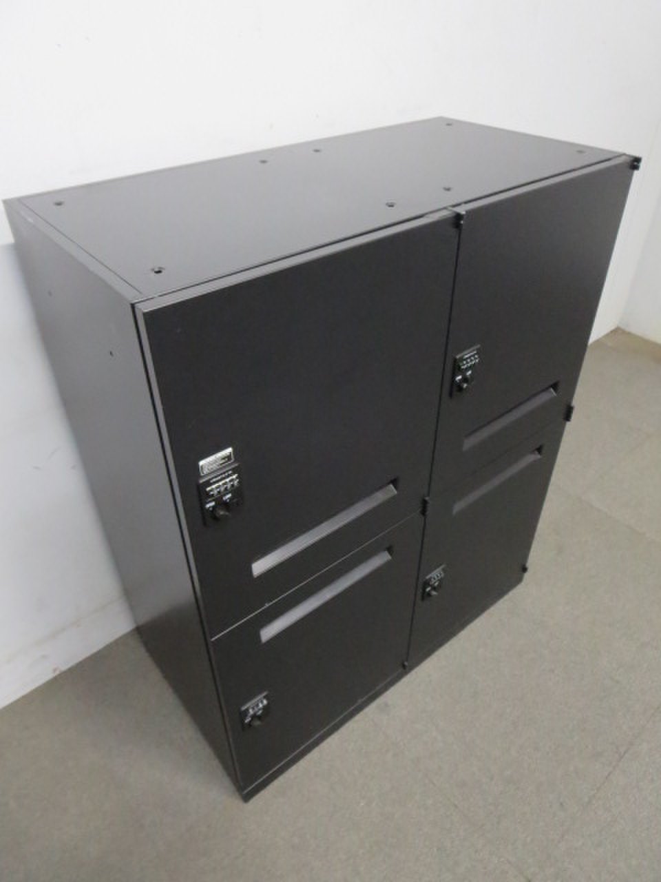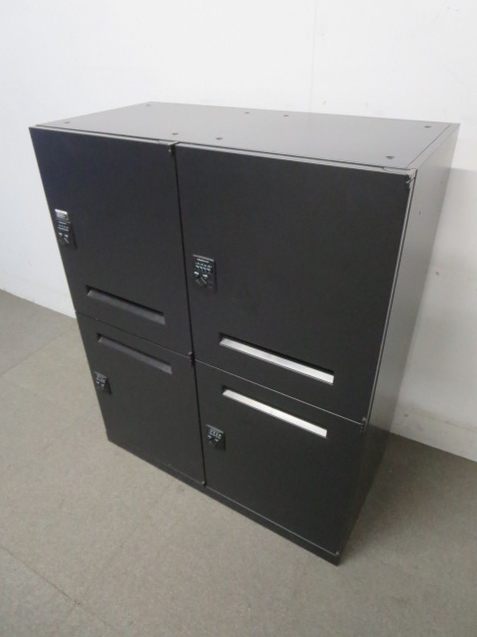 【モバイルワーカーにオススメ!】■オカムラ製 4人用パーソナルロッカー メールボックス付 ダイヤル錠 ■スタイリッシュなブラックカラー!- 川崎店