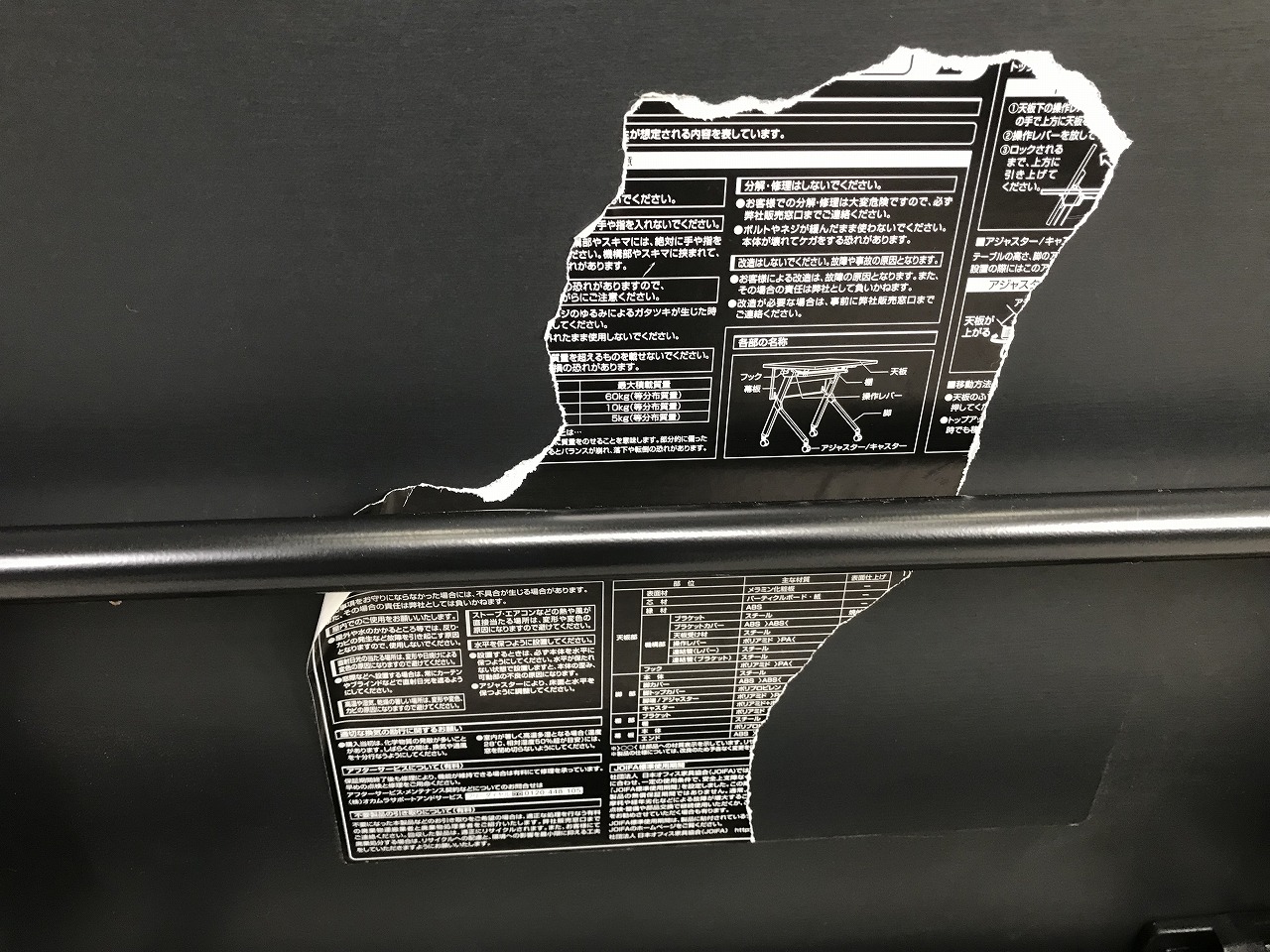 - 壊れている天板歪み、アジャスター無し、キャスター使用不可のようにそのテーブルの本来の効用を果たすための機能に不具合がある。