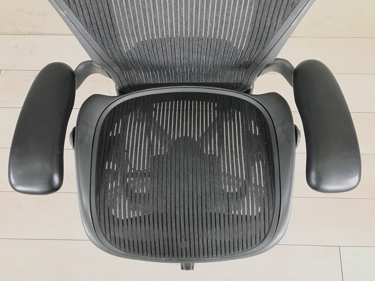 【★状態イマイチのためお安く!】■ハーマンミラー製 アーロンチェア Bサイズ 固定肘 ※キズあり・ランバーサポート無・昇降ガス圧弱めのためお安く!【訳あり特価品】