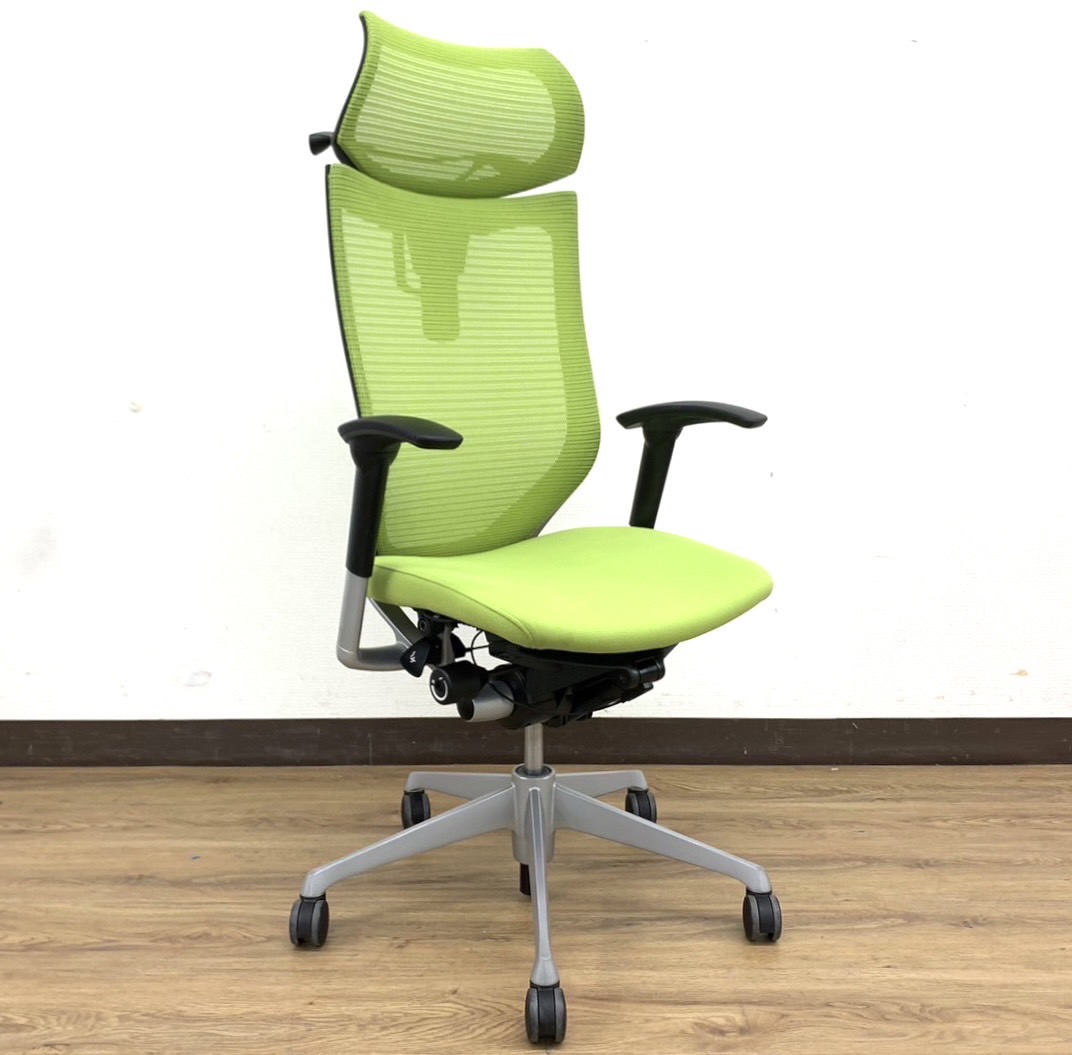 【状態良好Aランク】ライムグリーンバロン(Baron)チェア※ハンガー&可動ヘッドレスト付そしてシルバーフレーム仕様◆オカムラ製【RP】サーキュラーバリューCO2削減量の算出について