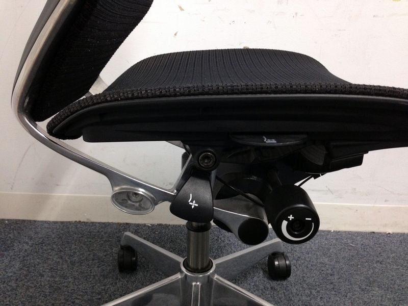 もちろん座り心地もコンテッサの直系ですから快適です。座面の素材はクッションとメッシュの2タイプあります。私、個人的には座面の中心部分でも外側でもテンションが変わらないクッション素材が、足を閉じても開いても快適なので推しです!"