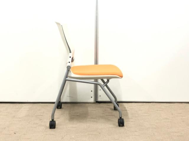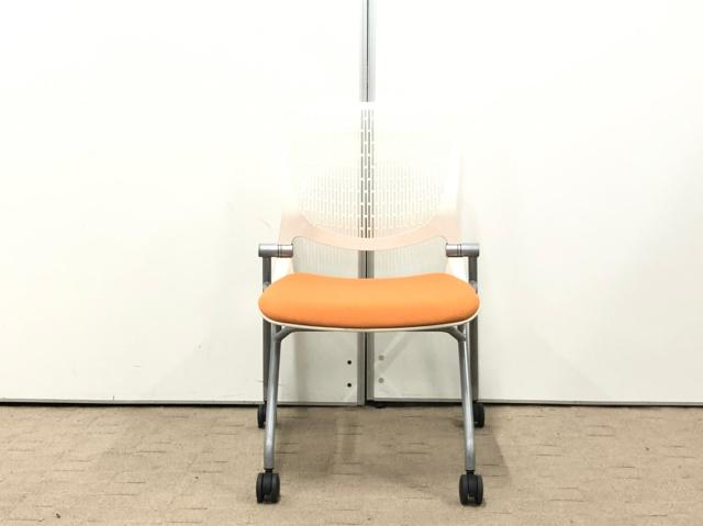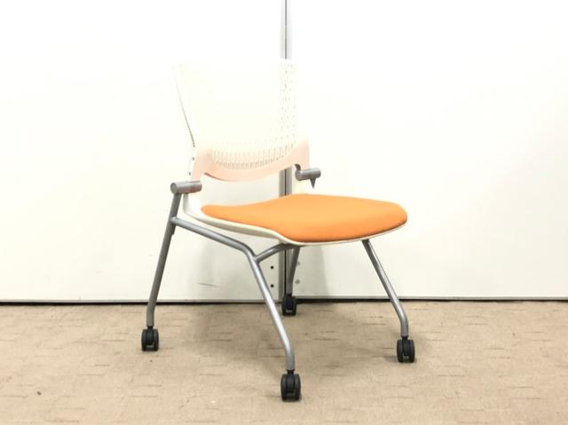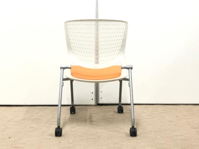 定番商品!オカムラ グラータ オレンジ ネスティングチェア【座面を畳んでコンパクト収納】【在庫3脚】- なんば日本橋店