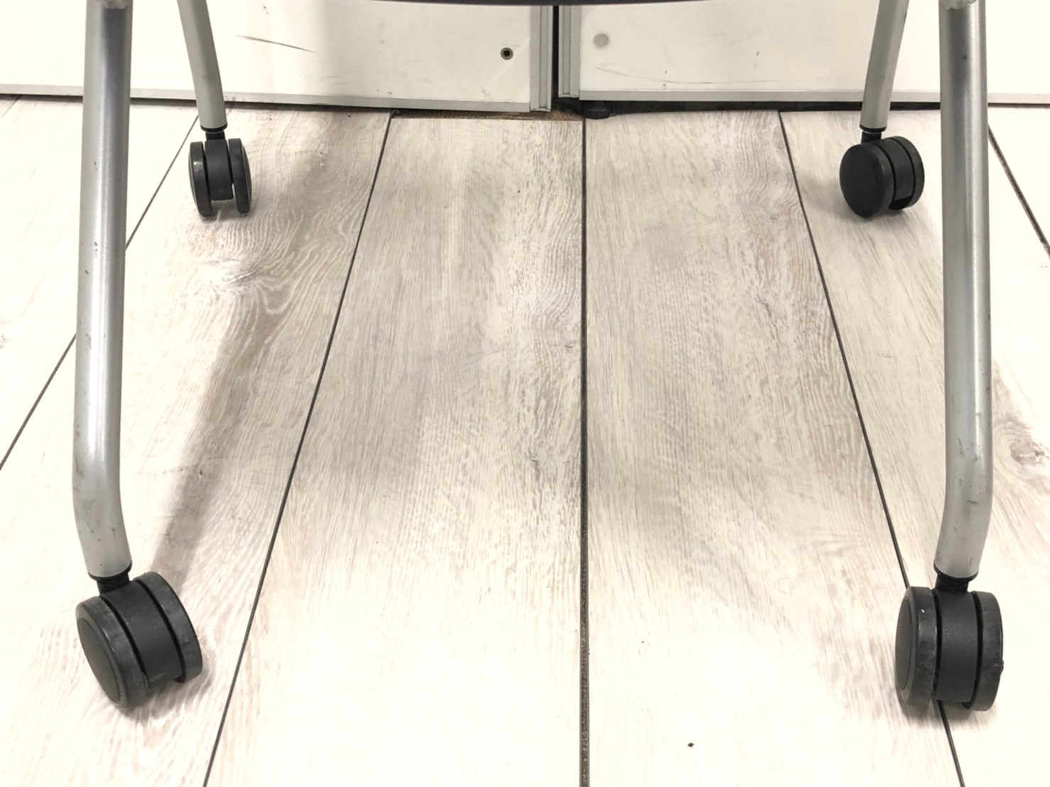 キャスター付きで軽快に水平移動できる4本脚タイプで、座を跳ね上げることにより平行にネスティングが可能です。