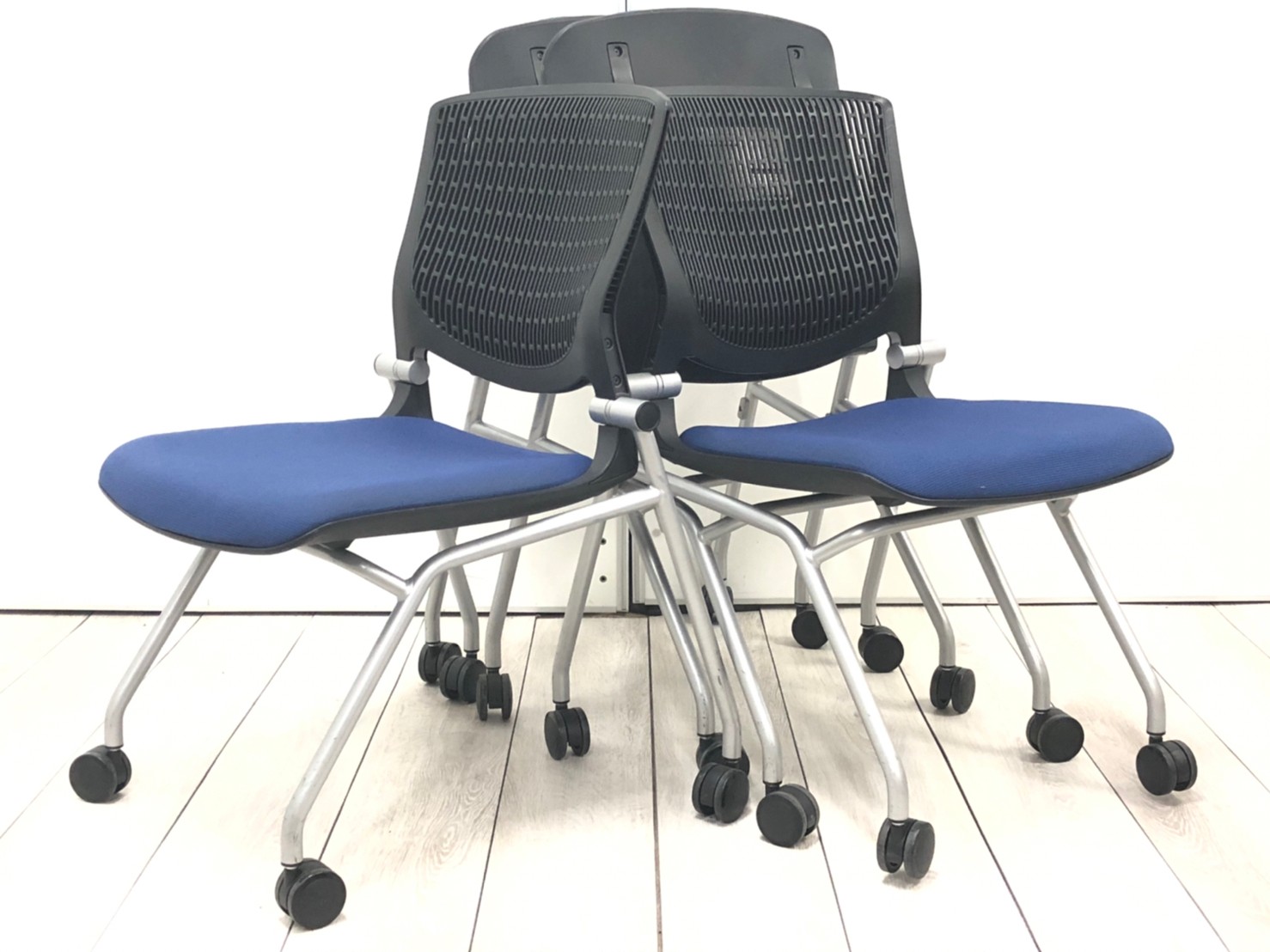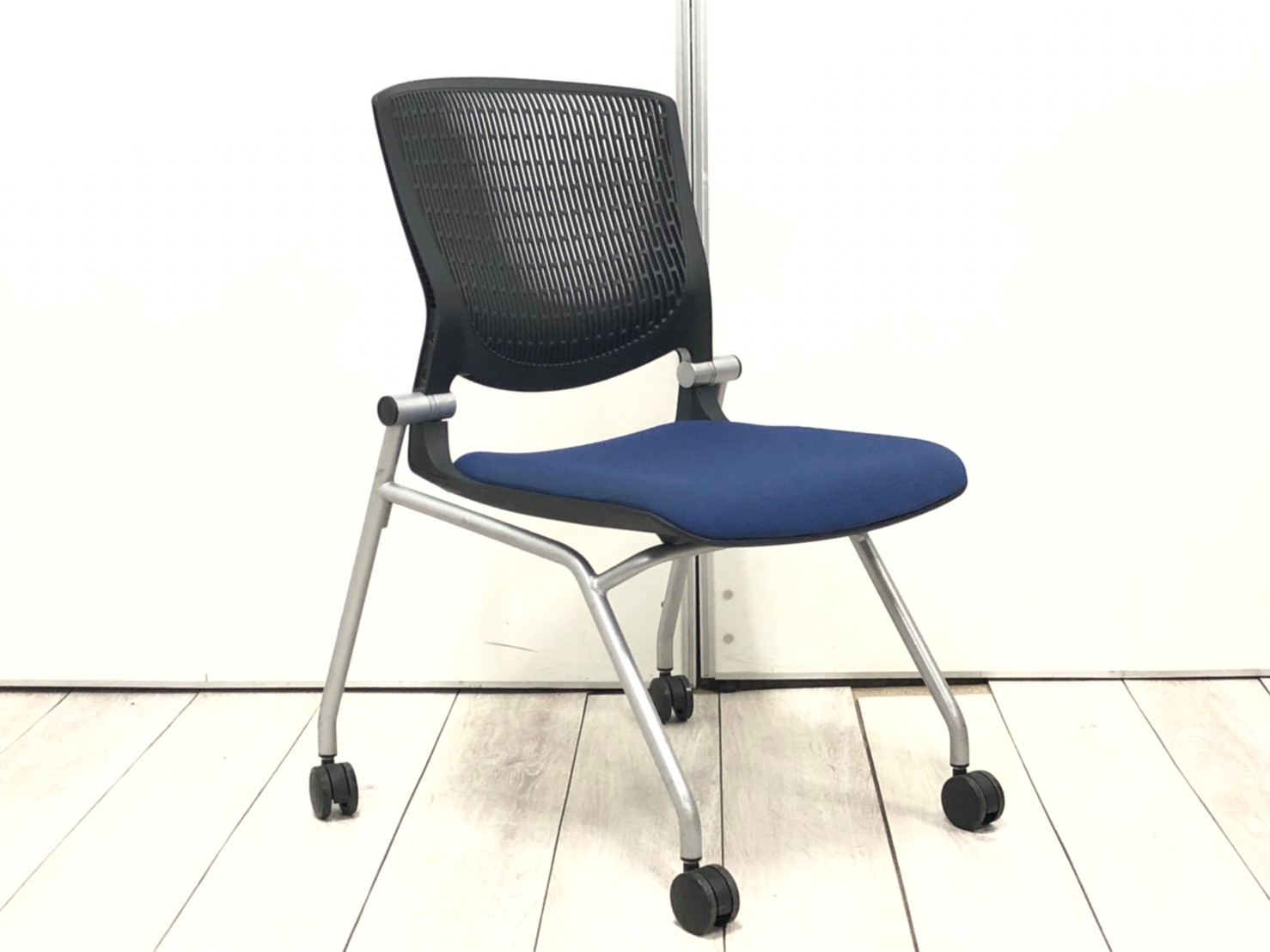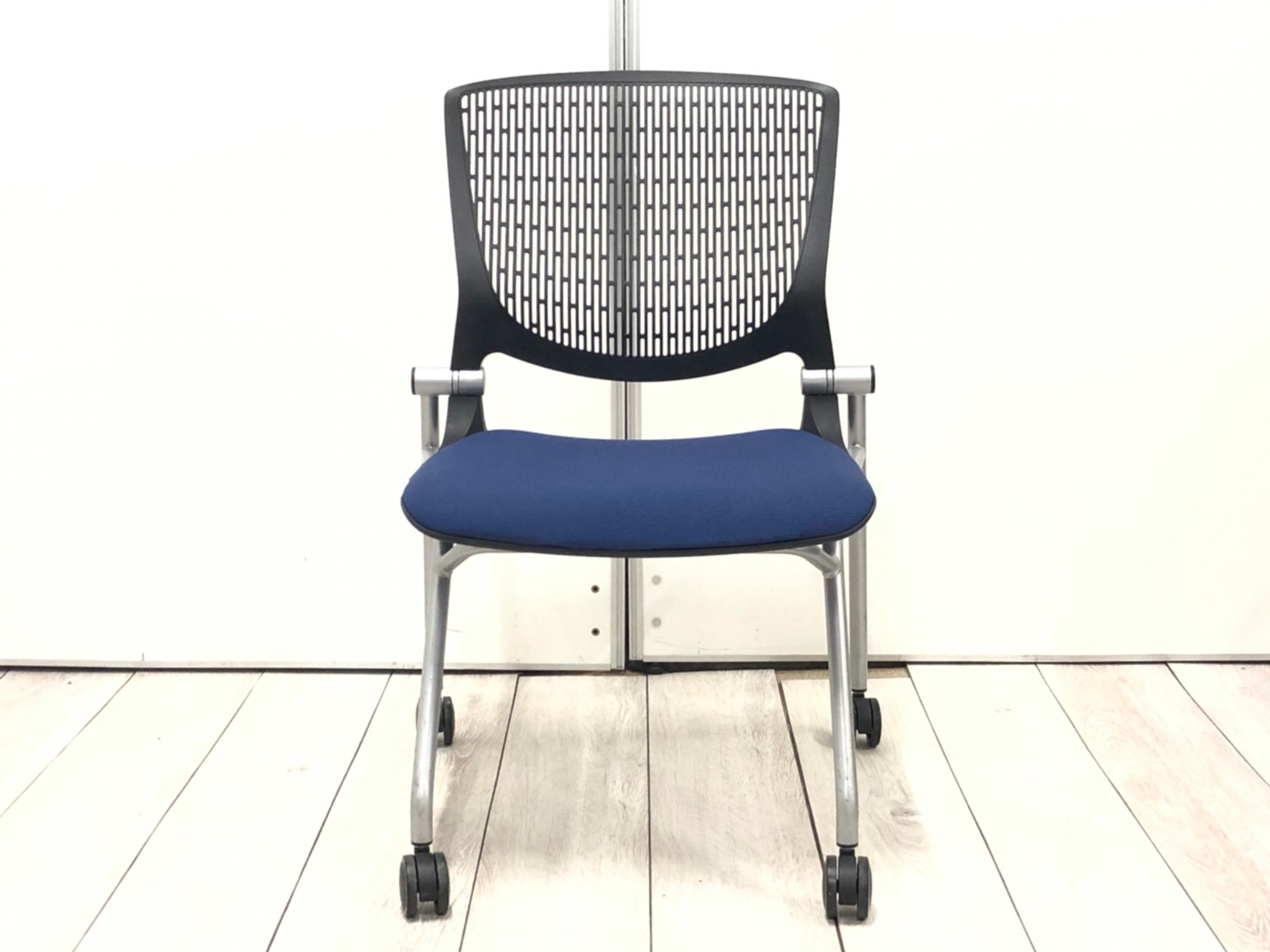 小肘付ネスティングチェア/背面クッション付き/ネイビー/オカムラ製/福岡/天神/博多/中古/安い