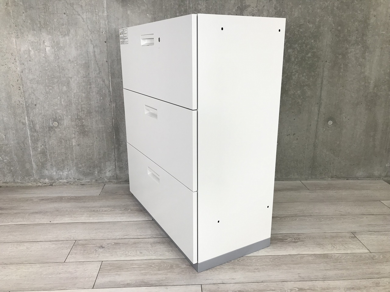【汎用性抜群の大容量書庫!抜群の収納力で書類をスッキリ整理!】■プラス(PLUS)製 L6シリーズ 3段ラテラル ローキャビネット W900×D450㎜ ■ホワイト ■シリンダー錠【弊社使用欄:A01035219】