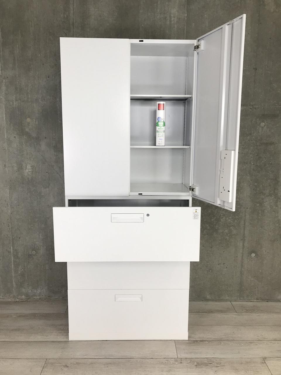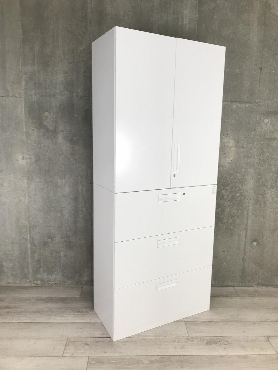 【収納量抜群の書庫セット!観音開き+引き出しタイプの人気の組み合わせ!】■コクヨ(KOKUYO)製 エディアシリーズ(EDIA) 両開き+3段ラテラル 書庫セット ハイキャビネット ■シリンダー錠 ■ホワイト