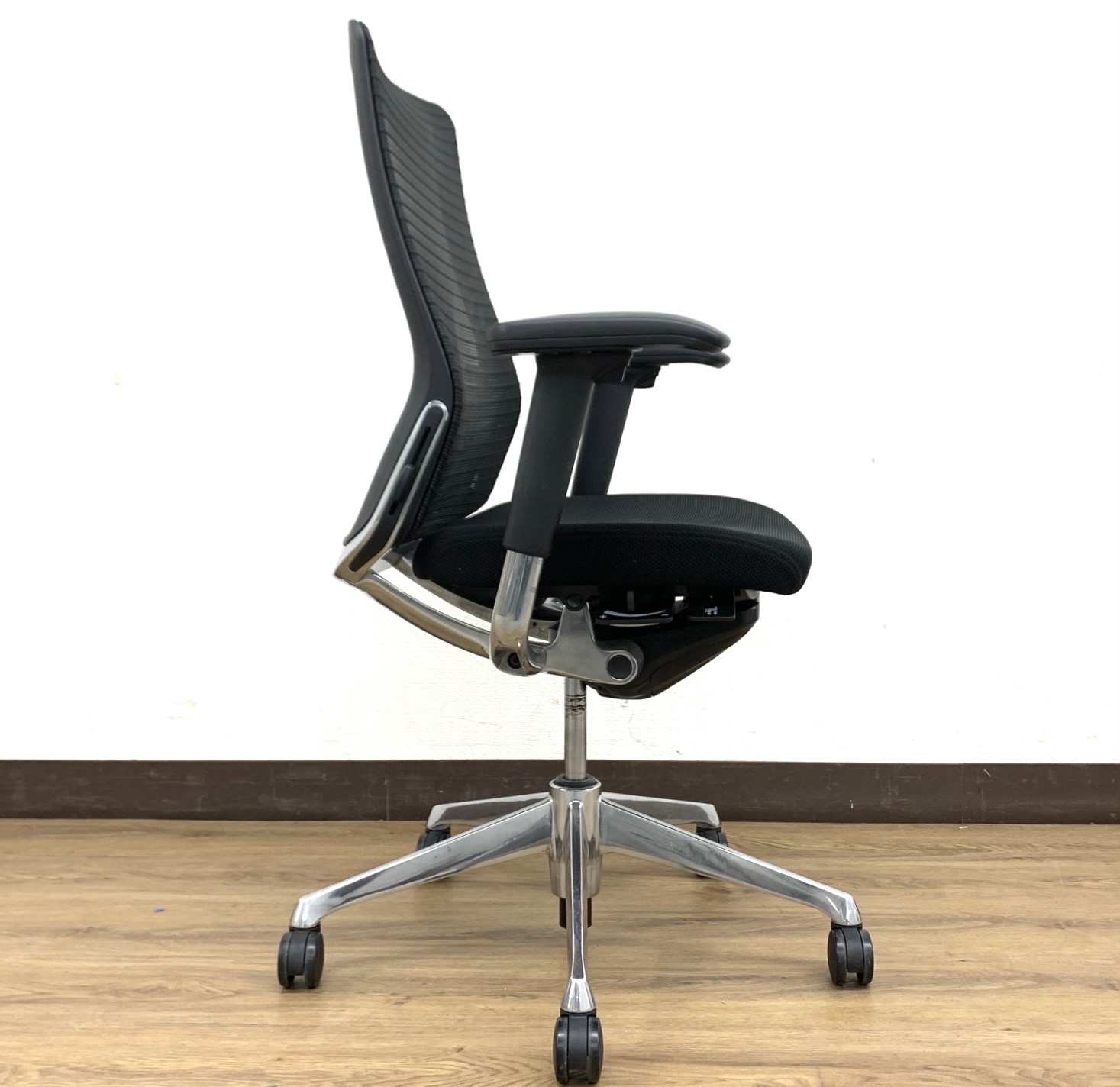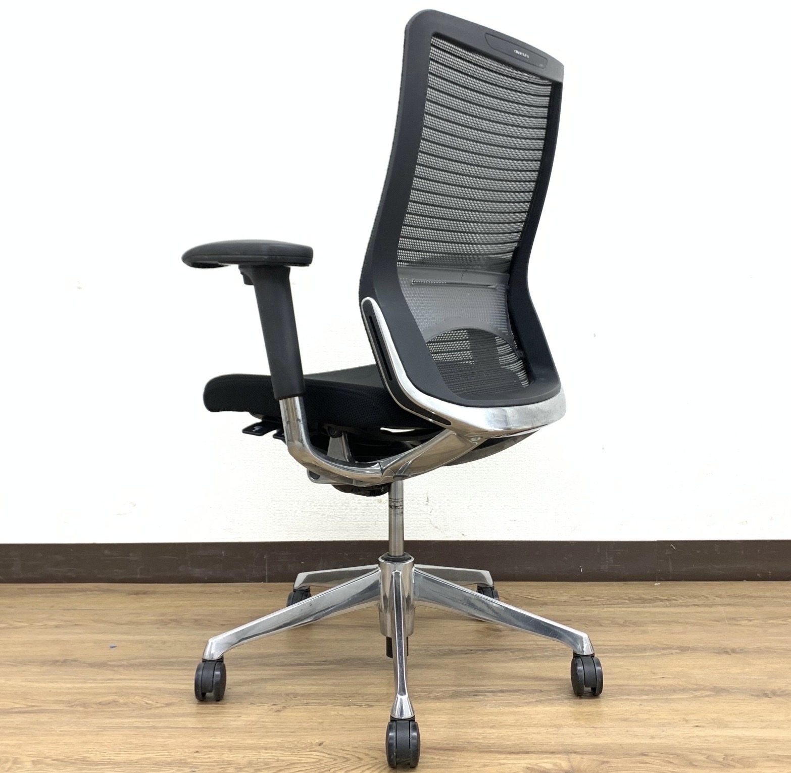 【2014年製】【状態Aランク】オトナの雰囲気ブラックカラーコーラル(CHORAL)チェア※ポリッシュ脚&肘掛け可動タイプ◆オカムラ製- 春日部・越谷店