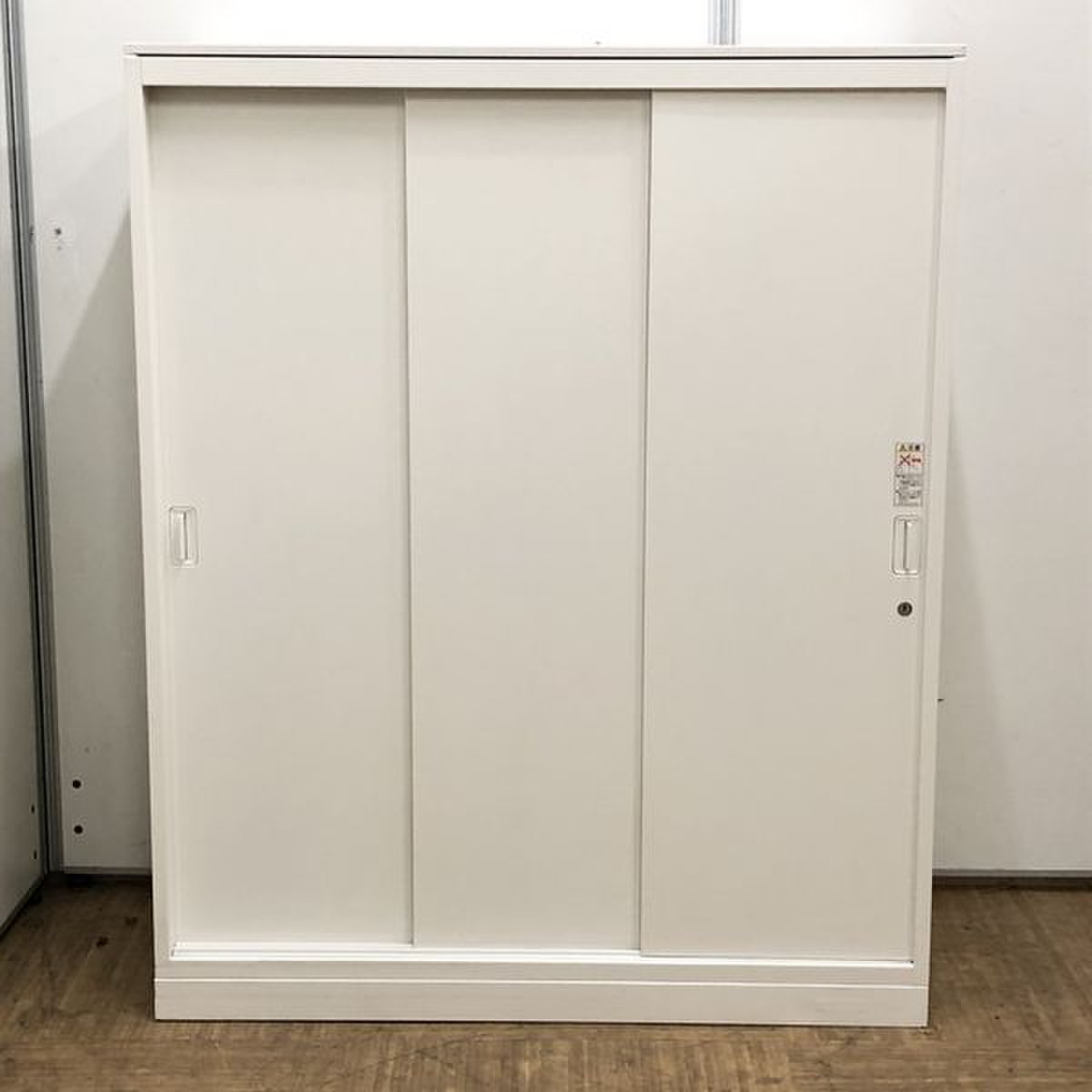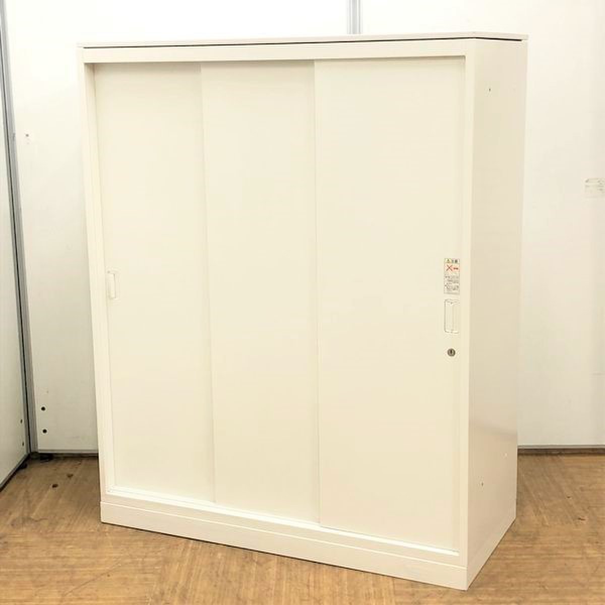 オカムラ製 人気レクトラインシリーズ ホワイト シリンダー W800xD450XH1050 3枚引戸 ※ベースなし 3枚引き違い書庫!!
