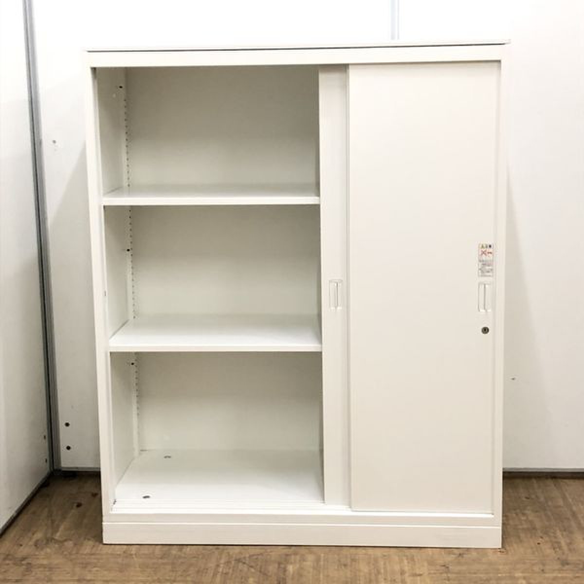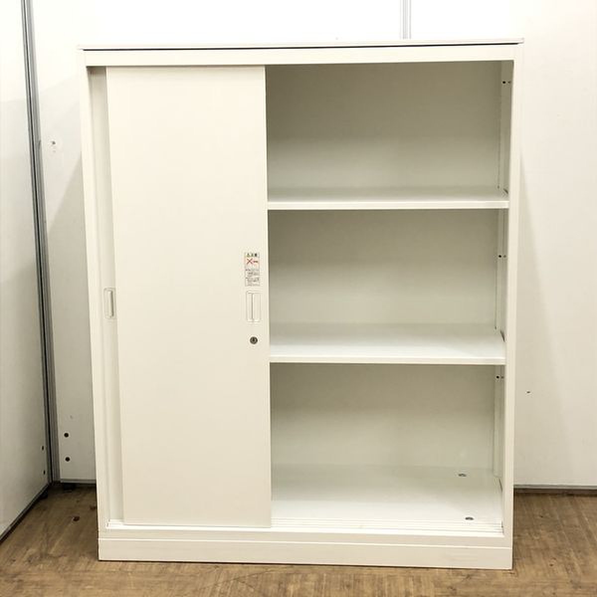 スライド式の扉のため導線を邪魔しません!使い勝手抜群の2枚引き違い書庫が入荷! ■オカムラ/レクトライン/ホワイト 2枚引き戸