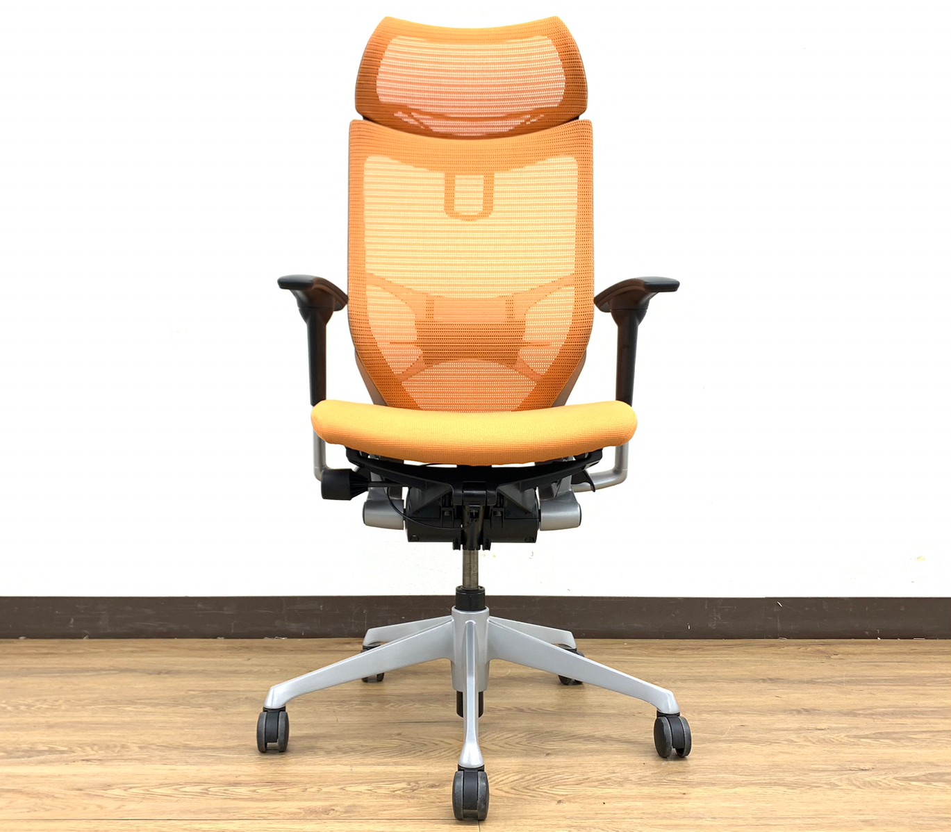 【状態良好Aランク】希少フルオプション!オレンジカラーバロン(Baron)チェア※可動肘かけ&ハンガー&ヘッドレスト付き!シルバーフレーム仕様◆オカムラ製【RP】サーキュラーバリューCO2削減量の算出について