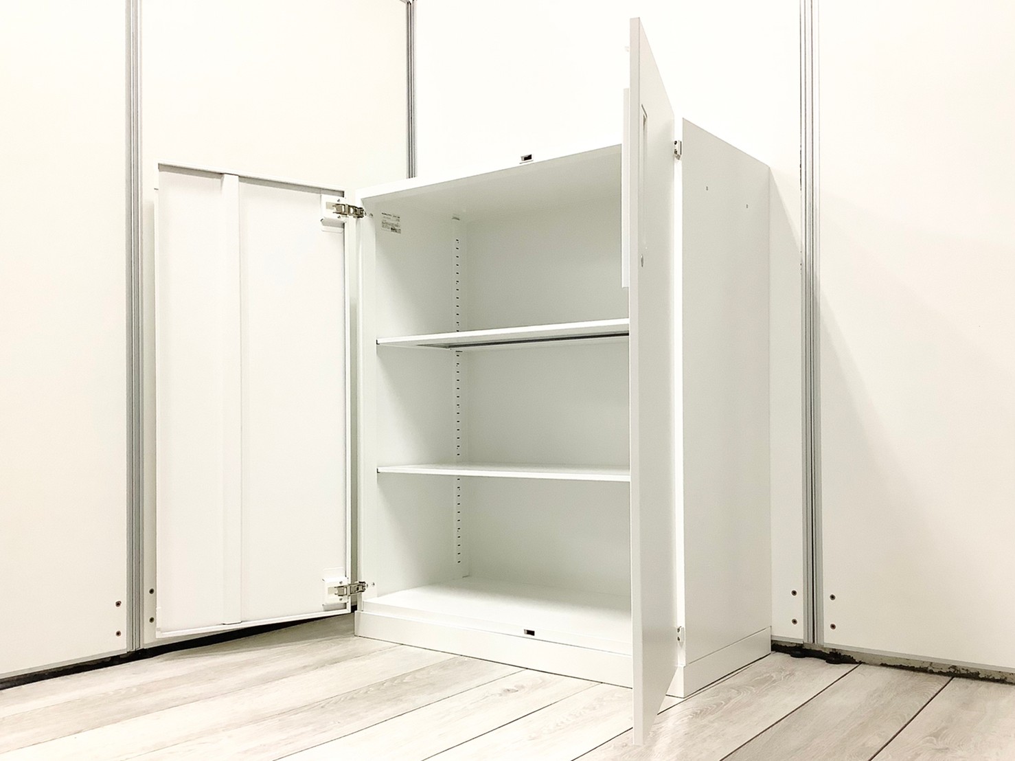 【収納物がひとめで分かる両開き戸タイプ!】■コクヨ(KOKUYO)製 エディア(EDIA)シリーズ 両開き書庫 ローキャビネット H1130㎜ ■天板・ベース付 ■ホワイト ■シリンダー錠