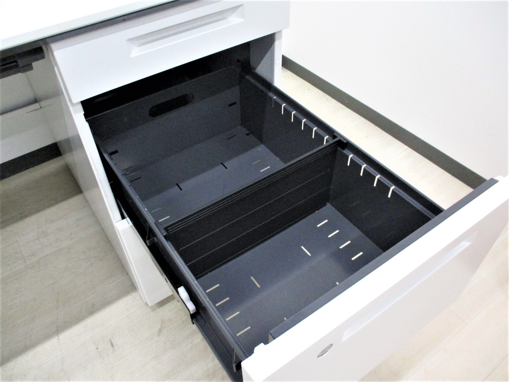 【幅広いワークスペースで上長席にもオススメ!】■コクヨ(KOKUYO)製 アイエス(iS)シリーズ 両袖デスク W1400mm ■シリンダー錠 ■ホワイト 【収納スペース充実!机上をスッキリ整理!】