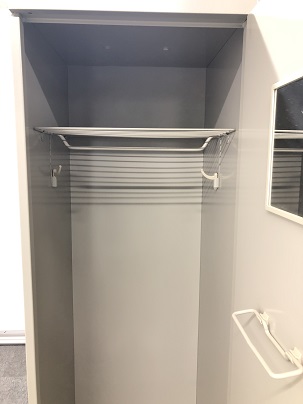 - 完備鏡、ネクタイ掛け、傘立て、網棚、フック等が全て完備されている。