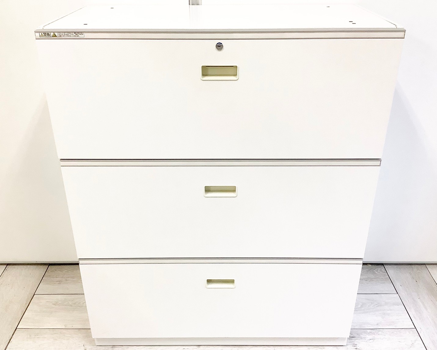 【A4ファイルも沢山収納可能!ホワイトカラーの人気シリーズ3段ラテラル書庫!】■イトーキ(ITOKI)製 シンラインシリーズ (THIN LINE) 3段ラテラル書庫 ローキャビネット ■シリンダー錠 ■ホワイト