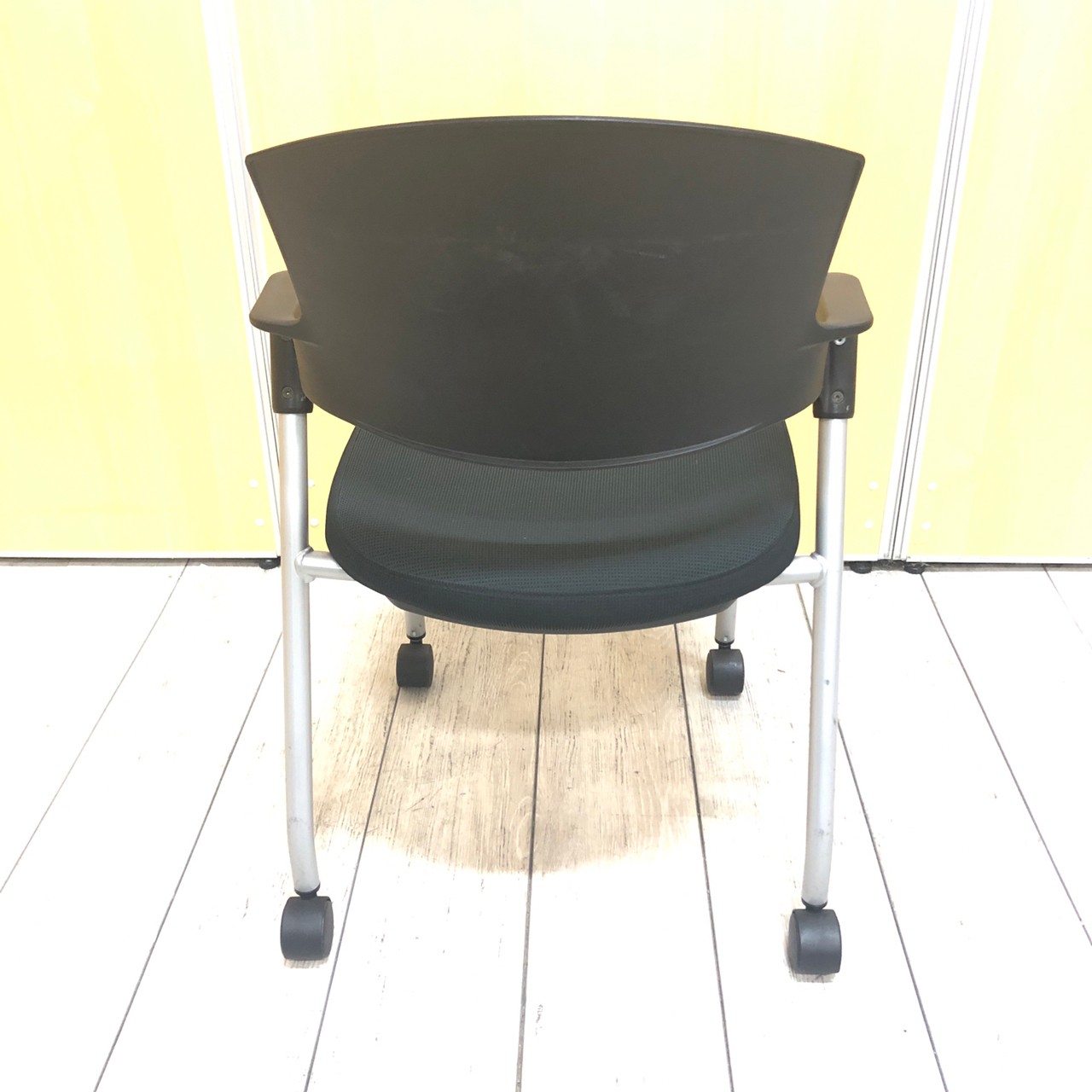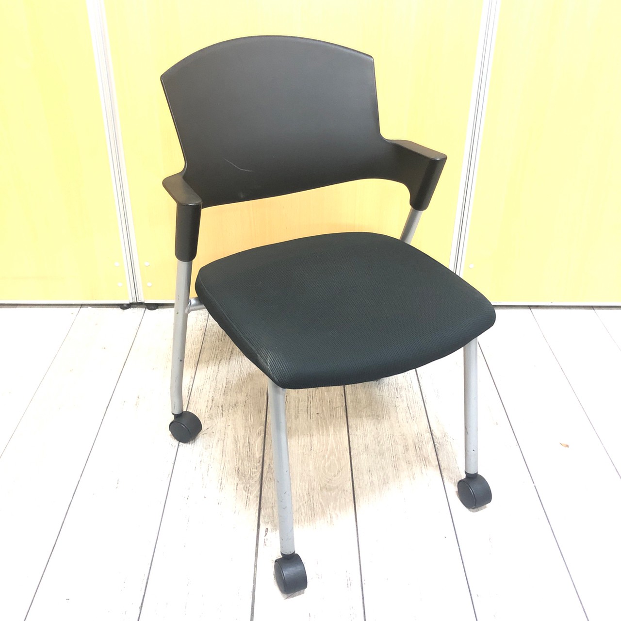 【シンプルスマートなスタッキングチェア!分厚いクッションで長時間でも快適な座り心地!】■スタッキングチェア 肘付ミーティングチェア ■固定肘 ■キャスター付 ■ブラック ■背面樹脂/コクヨ(KOKUYO/プロッティ